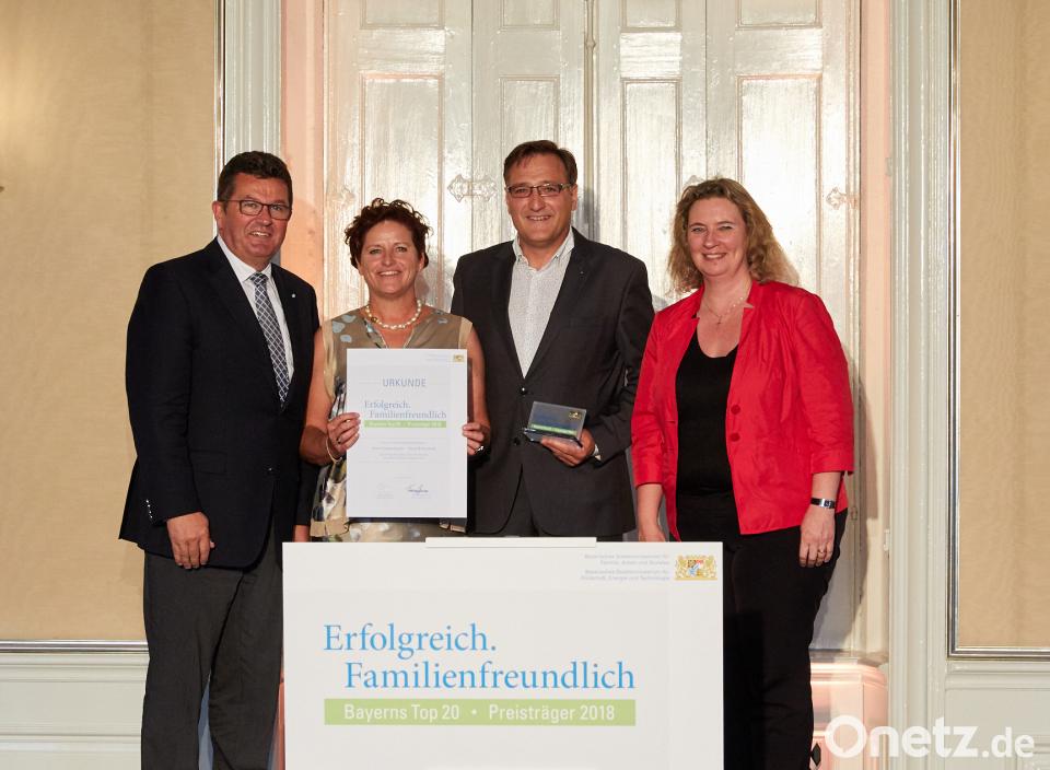 Schöner Erfolg für "Haare & Kosmetik Armin Sengenberger": Der Neustädter Salon mit zehn Mitarbeitern gehört als einziger in der Nordoberpfalz zu den 20 Preisträgern beim Unternehmenswettbewerb "Erfolgreich.Familienfreundlich", den die bayerischen Wirtschafts- und Arbeitsminsterien alle zwei Jahre gemeinsam ausloben. In einer eindrucksvollen Feierstunde im Nymphenburger Schloss nahmen Armin und Carola Sengenberger die Auszeichnung aus den Händen von Familienministerin Kerstin Schreyer und Wirtschaftsminister Franz Josef Pschierer entgegen. "Sie sind Vorbilder, die hoffentlich viele Nachahmer finden“, lobte Schreyer die Sengenbergers und würdigte insbesondere die Unterstützung der Mitarbeiter bei familienfreundlichen Arbeitszeiten.