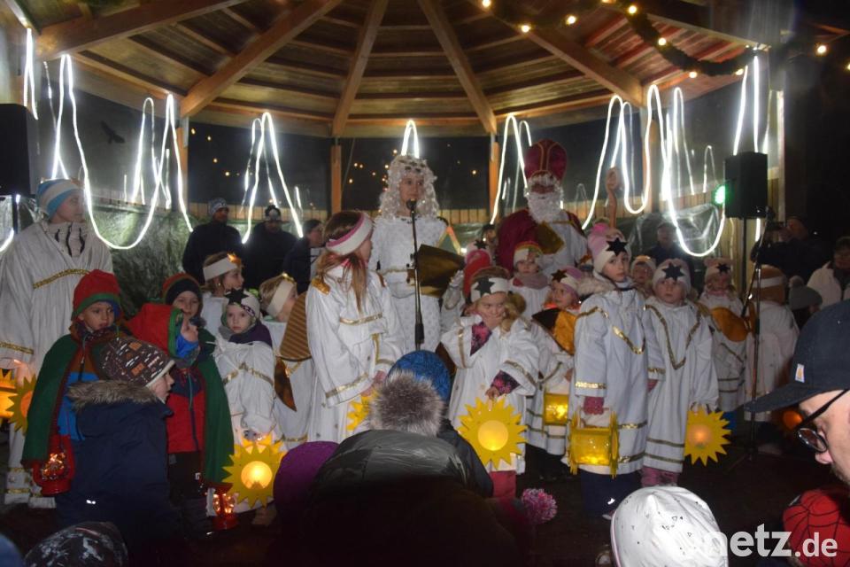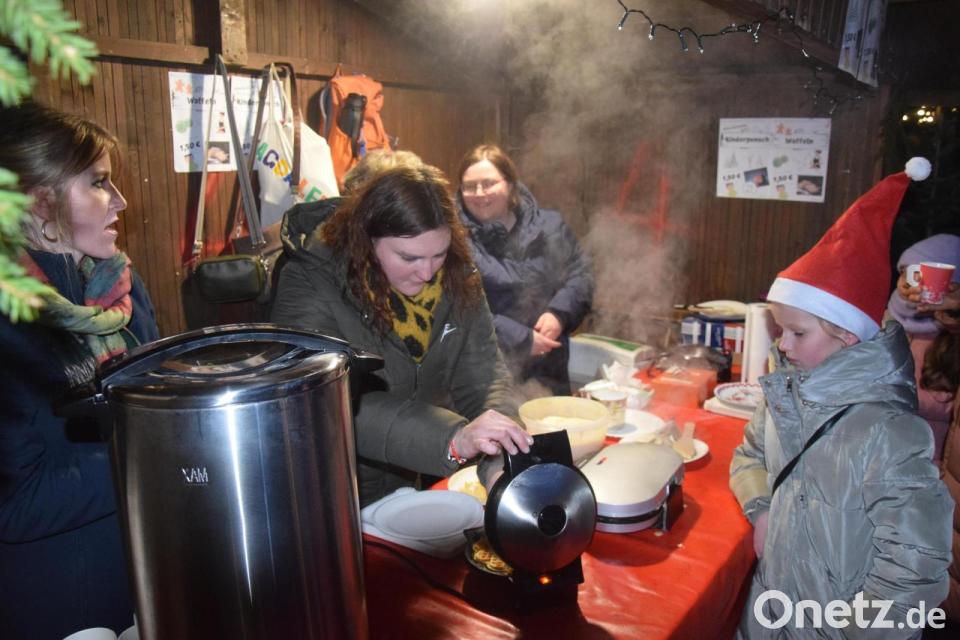 Das Areal präsentierte sich in weihnachtlicher Stimmung. Im weiten Rund standen die verschiedenen Buden mit ihren Angeboten und stimmungsvollen Lichtern. Von der Bühne ertönte Weihnachtsmusik, beleuchtete Christbäume verbreiteten weihnachtliches Flair und es mischten sich Gerüche von Bratwürsten, frischen Waffeln, Glühwein und leckerer Kartoffelsuppe.