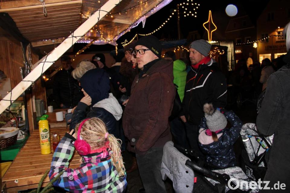 Pavillons und eine Holzhütte boten zudem Schutz gegen Nässe von oben. Mit weihnachtlichen Klängen versetzte die Bläsergruppe des Neustädter Gymnasiums unter Leitung von Studienrat Wolfgang Gleixner die Besuche in die passende Stimmung.