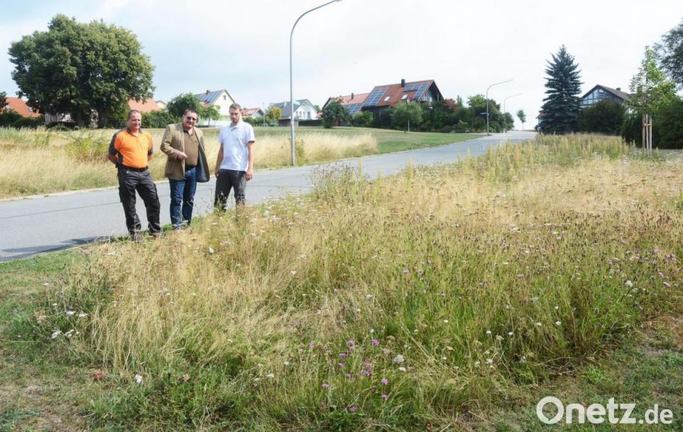 Der Keil soll dagegen eine beispielhafte Blühfläche mitten im Wohngebiet bleiben, erklären städtischer Geschäftsführer Peter Forster, Philipp Glaab vom Naturpark Oberpfälzer Wald und Alexander Lang vom Bauhof bei einem Ortstermin. "Dort haben wir 40 Arten von Pflanzen ausgemacht", sagt Glaab. Die bieten ein optimales Umfeld für Schmetterlinge, Wildbienen oder Käfer. Ein Teil des Bewuchses soll deshalb immer stehen bleiben, der andere wird abgemäht. Glaab: "Wir wollen die Strukturen erhalten."