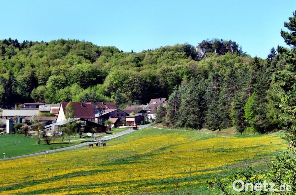 Es wirkt ein wenig, als suche der Weiler Neutras Schutz, so wie er sich an den Fuß des mächtigen Neutrasfelsens schmiegt. Vor dem Dörfchen breitet zurzeit der Löwenzahn mit seinen goldgelben Blüten einen farbenprächtigen Teppich aus. Das frische Grün der Laubbäume am Berghang schmeichelt dem Neutrasfelsen und bildet mit den dunkelgrünen Nadeln der Fichten und Kiefern ein harmonisches Farbenspiel.