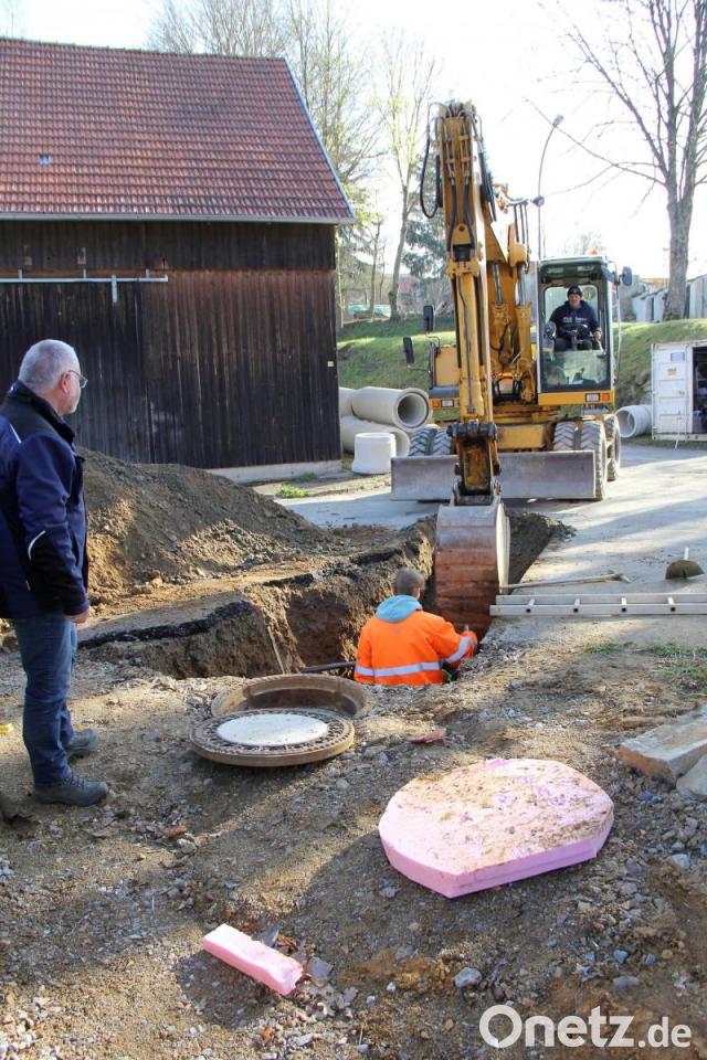 Nachdem 2020 die Voraussetzungen für die Ableitung des Niederschlagswassers vom Kapellenweg über ein Rückhaltebecken in die Murach geschaffen war, konzentrierte sich das Planungs-, Genehmigungs- und Zuschuss-Prozedere auf die Fortführung der Baumaßnahme. Am 26. März dieses Jahres erteilte der Gemeinderat dem Bauunternehmen Baumer aus Oberviechtach als wirtschaftlichsten Bieter aller ausgeschriebenen Lose den Gesamtauftrag. Genau vier Wochen später, am 23. April, erfolgte nun quasi der „Spatenstich“ am Anschlussschacht im Kapellenweg.