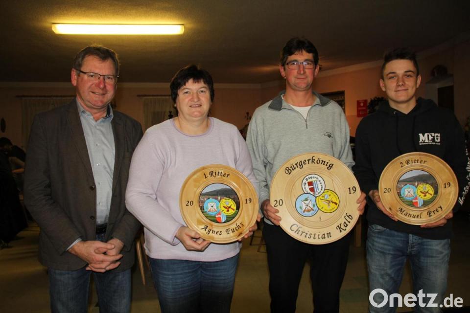 Die Würde des Bürgerkönigs holte sich heuer Christian Kalb mit einem 42, 5-Teiler. Erste Ritterin ist Agnes Fuchs (85-Teiler), zweiter Ritter ist Manuel Prey mit einem 96,6- Teiler. Ihre drei gestalteten Scheiben hatte wieder einmal Josef Hoch gefertigt. Der Dank der Schützenmeister galt allen Teilnehmern und Helfern in der Organisationsarbeit.