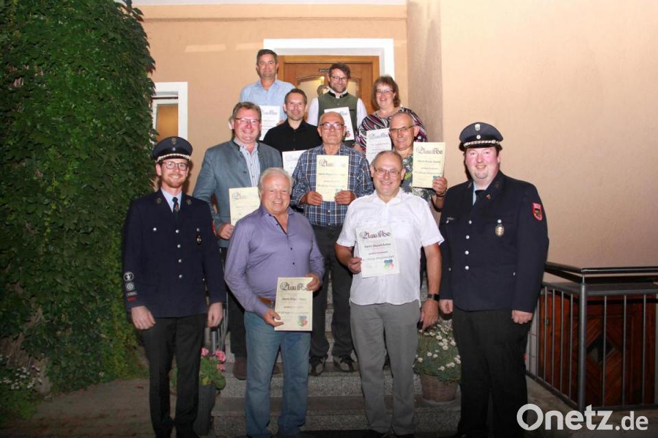 Mit der goldenen Vereinsehrennadel mit Urkunde für 40-jährige Mitgliedschaft wurden Richard Bauer, Anton Deyerl, Hermann Deyerl, Alois Köppl, Georg Kraus, Bürgermeister Martin Prey und Hubert Reindl ausgezeichnet.