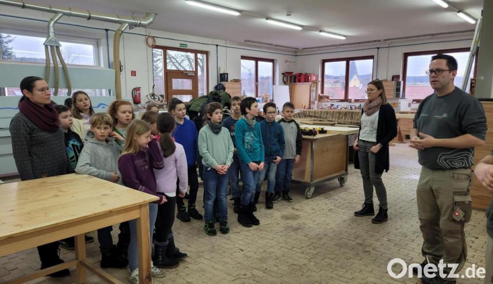 Die Klasse 3/4 der Grundschule Niedermurach besuchte mit Rektorin Ortrud Sperl und Fachlehrerin Ingrid Pflug die Schreinerei Danzl. Der Besuch diente den Schülern als Einführung in den Materialbereich „Holz“ im Fach Werken und Gestalten und sollte Einblick in die Abläufe der Holzverarbeitung geben. Mit viel Herzblut und Begeisterung führte Inhaber und Kreishandwerksmeister Florian Danzl die Schüler durch die Schreinerei und erklärte einzelne Maschinen und tägliche Arbeitsabläufe. So wurde den Kindern eine CNC-Fräsmaschine live vorgeführt und auch die für ihren Fachunterricht benötigten Holzwürfel wurden von der Schreinerei mittels Kreissäge und Hobelmaschine während des Besuchs direkt hergestellt.