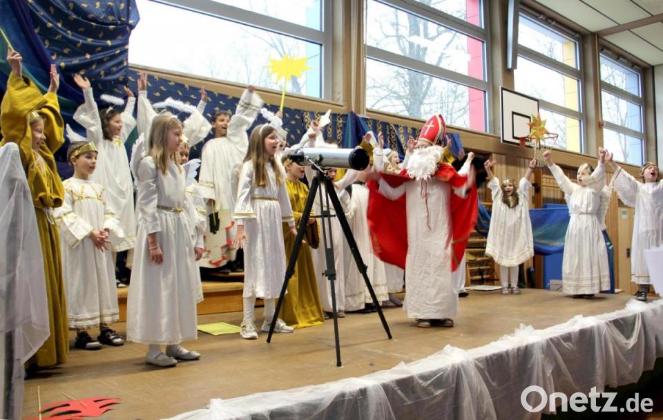 Sehr viele Gäste konnte Rektorin Ortrud Sperl zur vorweihnachtlichen Feier begrüßen, unter ihnen Pfarrer Herbert Rösl, Bürgermeister Martin Prey mit Gattin, stellvertretende Bürgermeisterin Rita Salomon, Mitglieder des Elternbeirats und des Fördervereins sowie zu aller Überraschung der Autor des Musicals Dr. Klaus Sauerbeck – an der Schule kein Unbekannter.