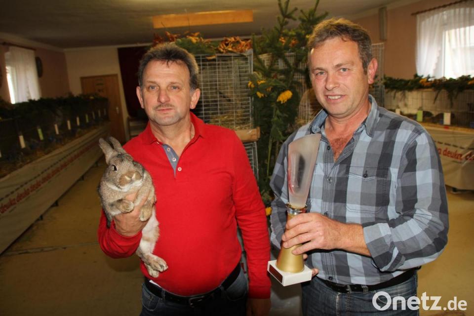 Zusätzlich hat Edi Zitzmann einen Landesverbandsehrenpreis (LVE) Kleinsilber graublau mit 387,5 Punkten und einen Bezirksverbandsehrenpreis (BVE) für einen Wurf Kleinsilber blau mit 385 Punkten erhalten. Einen Kreisverbandsehrenpreis (KVE) erhielt Reinhold Meier für seine vier Castor Rex mit 383,5 Punkten und einen weiteren KVE bekam Gerhard Elsner für einen Wurf Widder-Zwerge und 383 Punkten. Züchter Edi Zitzmann holte auch noch die Auszeichnungen für den besten Rammler (Kleinsilber Graublau) mit 97,5 Punkten und die beste Häsin (Kleinsilber Graublau) und 97 Punkten ab. Er hatte damit die meisten Preise dieser Lokalschau abgeräumt.