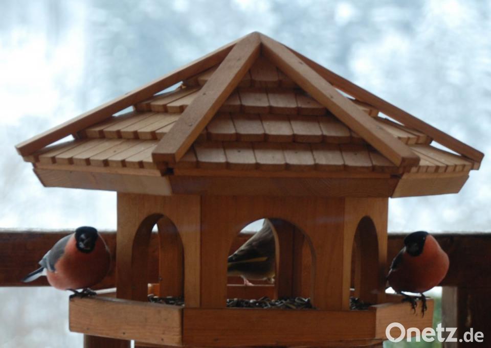 Eiweiß finden die Wintervögel, wenn sie im Laub, in der umgegrabenen Gartenerde oder den Ritzen der Baumrinde nach Raupen und Spinnen suchen. "Im Frühling schlüpfen viele Schmetterlingsraupen und dann ist das Angebot wieder ganz gut", meint der frühere LBV-Kreisvorsitzende. Sauberkeit sei wichtig, damit sich an den Futterplätzen keine Infektionen ausbreiten. Letztes Jahr hatte er bis weit ins Frühjahr "reingefüttert" und erst anschließend die letzten Körner von der Terrasse gefegt. "Die Vögel sind nicht so geschaffen, dass sie den Teller leer fressen. Sie picken sich etwas Gutes raus, so wie sie es auch im Garten machen", erklärt er die Tatsache, dass es unter dem Vogelhäuschen oft "wild" ausschaut. Besondere Gäste waren 2018 drei Kernbeißer. "Die sind groß und dick und sehr imponierend", berichtet der Experte. Mit ihrem kräftigen Kegelschnabel knacken sie gern und mühelos Kerne, um an deren Samen zu gelangen. "Ich habe deswegen extra Kirschkerne gesammelt", sagt er und lacht. Leider sei der Kernbeißer, der wegen seiner Größe auch als Finkenkönig bezeichnet wird, bisher noch nicht aufgetaucht.