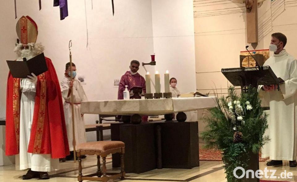 Die Familien waren zum Gottesdienst am zweiten Adventsonntag geladen, wo auch "Sankt Nikolaus als Vorbild" Thema war. Über den heiligen Nikolaus gebe es viele Geschichten, berichteten Pater Joy und Pastoralreferent Maximilian Pravida. Auf dem Weg der Liebe und der Gerechtigkeit wolle man im Advent Jesus entgegengehen, so wie es auch der heilige Nikolaus in seinem Leben bezeugte. Zu einem Nikolauslied zog er in die Kirche ein und begrüßte die Kinder, um ihnen nach dem Dank für die Einladung Geschichten zu erzählen.