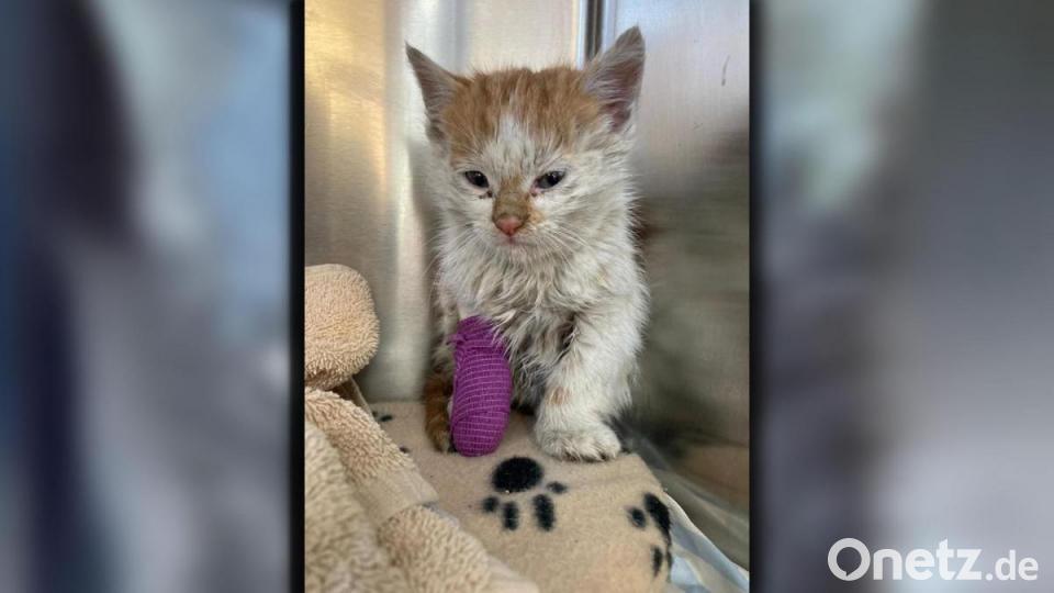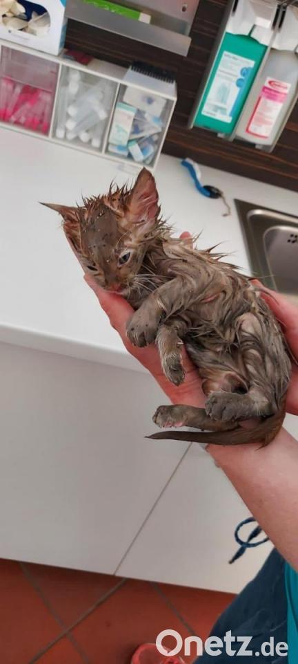 Mit einer Kanalkamera, die die Feuerwehr inzwischen besorgt hatte, suchten sie die genaue Stelle, an der das schreiende Kätzchen saß. Laut Feuerwehr steckte es wohl schon seit mindestens 24 Stunden unter der Erde fest. "Nachdem das letzte Stück sogar mit bloßen Händen gegraben wurde, öffneten die Retter mittels Winkelschleifer vorsichtig das Rohr", berichtet sie. Mit dem gesamten Oberkörper unter der Erde zog einer von ihnen schließlich das Tier heraus. Eine Tierärztin kümmerte sich um den kleinen Kater, den die Feuerwehr Bergham "Röhrich" getauft hat.