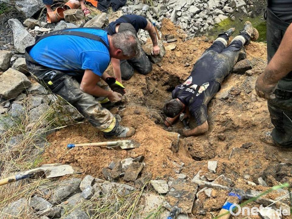 Eine Katze ist in ein Kanalrohr gerutscht, so erreichte ein Meldung die Freiwillige Feuerwehr Bergham am Montag gegen halb zwölf. "Kein Problem", hieß es, bis die Einsatzkräfte sahen, dass sich die Leitung teilt – tief unter der Erde. Wie die Feuerwehr berichtet, war es nicht möglich, das Rohr mit einem Bagger freizulegen, deshalb fingen die Feuerwehrler mit Spaten, Schaufeln und Pickeln zu graben. Etwa drei Stunden und 1,30 Meter später gelangten sie an das Rohr.