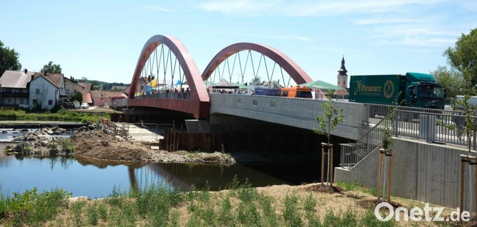 Nach 20 Jahren Vorlauf und fünf Jahren Bauzeit ist die Brücke über den Regen in Nittenau fertiggestellt worden. Seit Montag läuft der Verkehr vorerst einspurig Richtung Stadtmitte. Bei der Anfahrt musste der bayerische Finanzminister Albert Füracker noch die Behelfstrasse nehmen, denn auf der neuen Brücke feierte die Bevölkerung ein Fest mit Musik und Freibier.