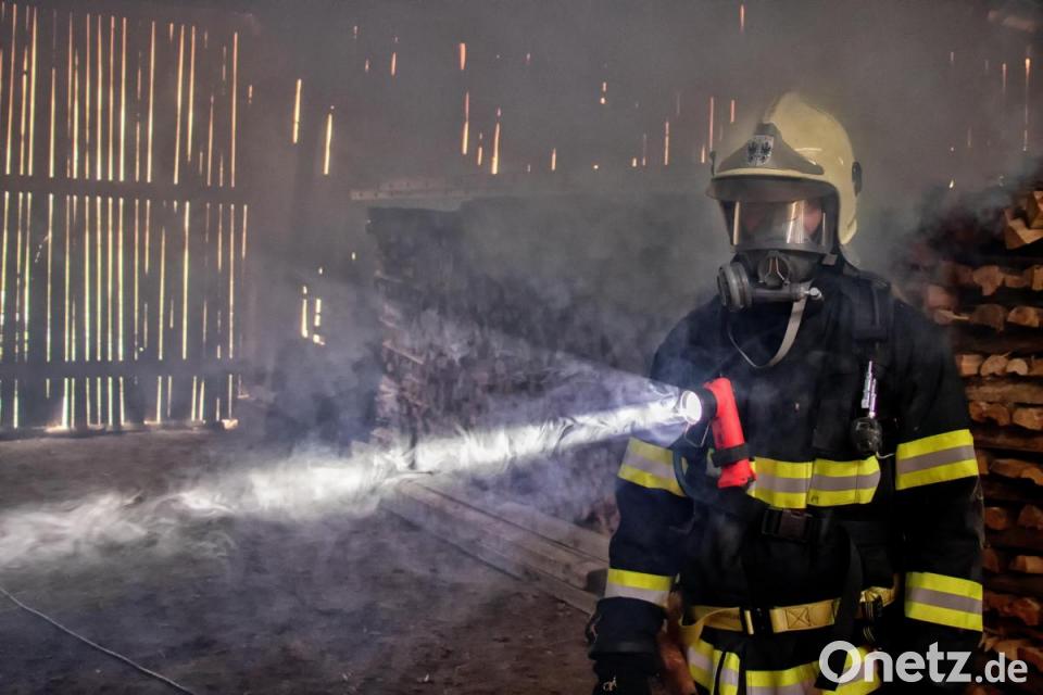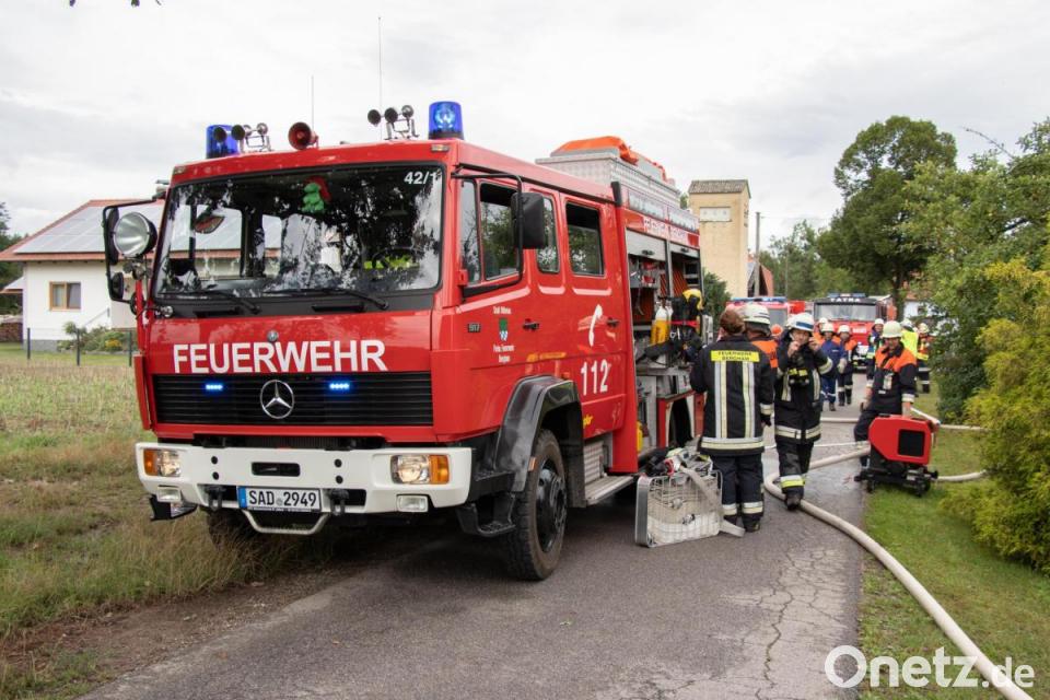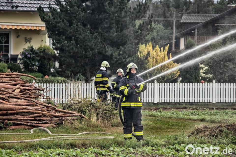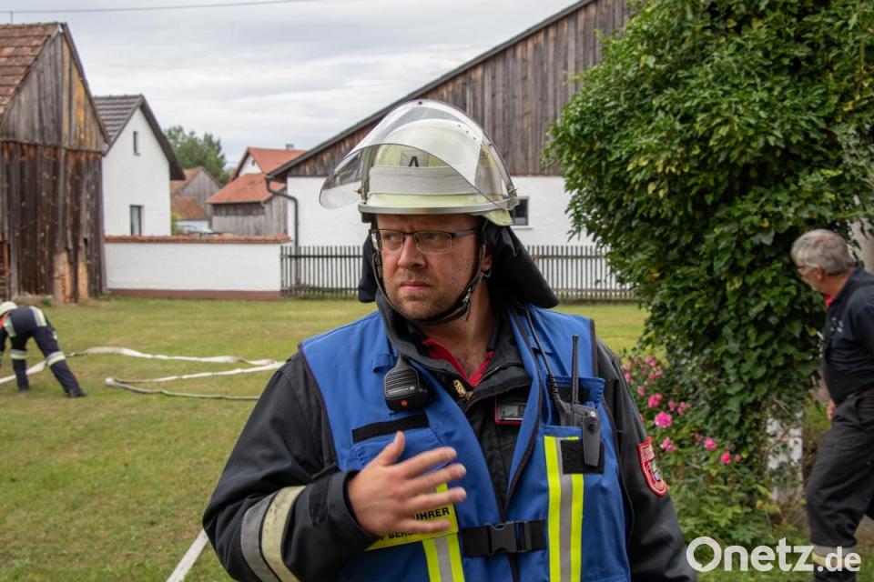 Vor Ort stellte die zuständige Feuerwehr Kaspeltshub einen Stall, der in Flammen steht, fest und bekam die Information, dass sich darin zwei Personen befinden. Die Feuerwehr Kaspeltshub baute eine Riegelstellung zum angrenzenden Wohnhaus auf, um dieses vor einem Übergreifen der Flammen zu schützen. Die kurz darauf eintreffenden Feuerwehren Bergham und Prestice schickten zwei Atemschutztrupps ins Gebäude, um die vermissten Personen zu retten. Zeitgleich baute die Feuerwehr Neuhaus aus einem in der Nähe liegenden Löschteich eine Wasserversorgung über lange Strecke auf (260 Meter langer B-Schlauch).