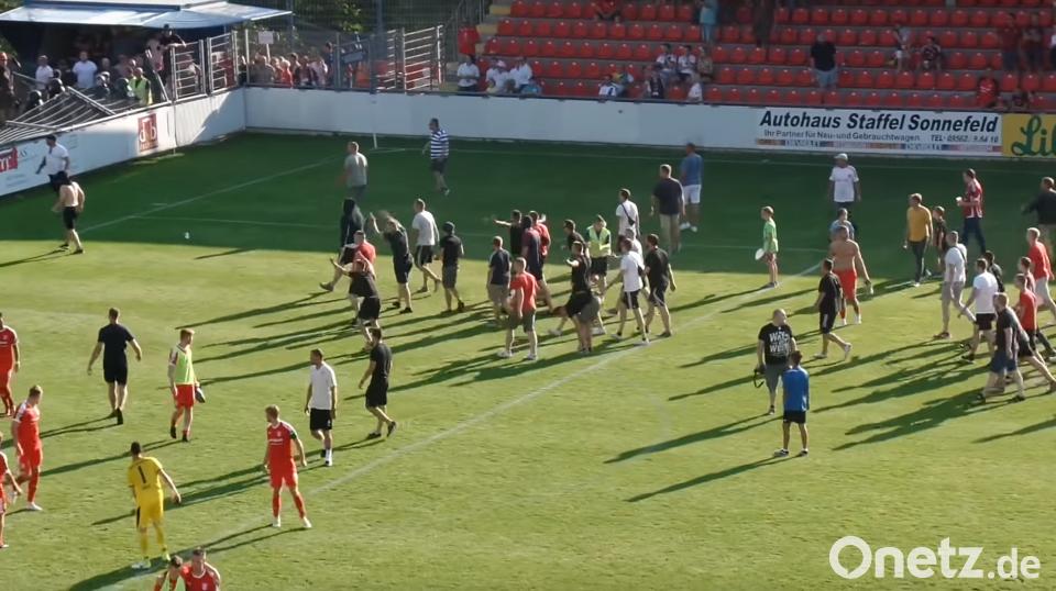 Wie die Polizei mitteilt, rissen Anhänger aus Halle nach dem Schlusspfiff einen Zaun nieder. Das nahmen einige "streitsuchende Nürnberger" zum Anlass, um über ein für die Autogrammstunde für Kinder geöffnetes Tor aufs Spielfeld zu gelangen. Rund 60 Personen marschierten auf den gegnerischen Fanblock zu. Die Einsatzkräfte, die vor dem Block standen, schritten ein. Wie ein Youtube-Video zeigt, gingen die Polizisten ebenfalls aufs Feld und drängten die Nürnberger zurück.