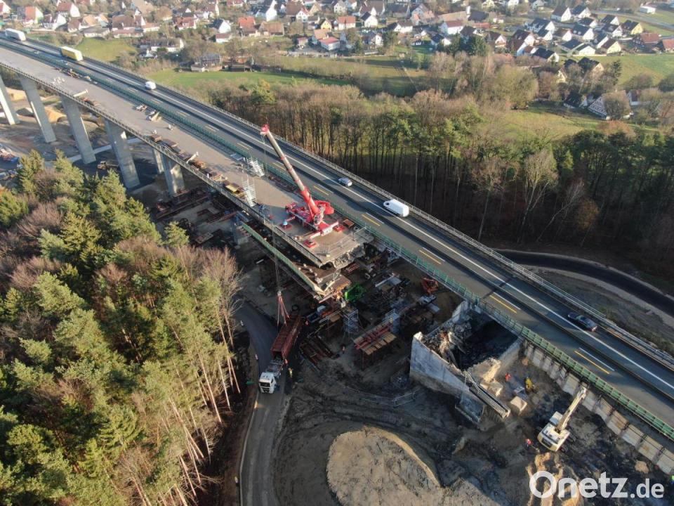 Heute fällt der nächste Brückenpfeiler an der Großbaustelle „Talbrücke Unterrieden“. Deswegen stoppt die Polizei den Verkehr zwischen 10 Uhr und 11 Uhr. Die Sperrung soll laut Mitteilung der Autobahndirektion Nordbayern etwa eine halbe Stunde dauern.