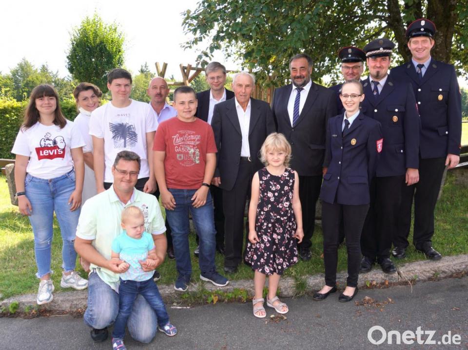 Eines seiner schönsten Geschenke war es, dass sein „einziger Freund“, wie er ihn scherzhaft nennt, der 34 PS Hanomag, Baujahr, 1958 wieder funktioniert. Trotz seines hohen Alters hat sich der Jubilar noch lange nicht aufs Altenteil zurückgezogen, sondern ist aktiv wie eh und je. Zur Geburtstagsfeier beim Gipfelwirt auf dem Fahrenberg ließ die Feuerwehr Bernrieth die Blaskapelle Waldkirch dem ältesten Mitglied ein Ständchen spielen. „Das ist für mich eine richtige Ehre, ich fühl mich wie früher König Ludwig“, meinte Wüst sichtlich beeindruckt. Nach dem Dankgottesdienst der Bernriether Wehr am Fahrenberg gratulierten alle Feuerwehrleute zum runden Geburtstag. Die Wehr war mit großer Führungsmannschaft mit Vorsitzenden Norbert Feneis (Unterfahrenberg), Sina Bayer (Oberbernrieth), Albert Gollwitzer (Bibershof) und Bernhard Müller (Waldthurn) angetreten.