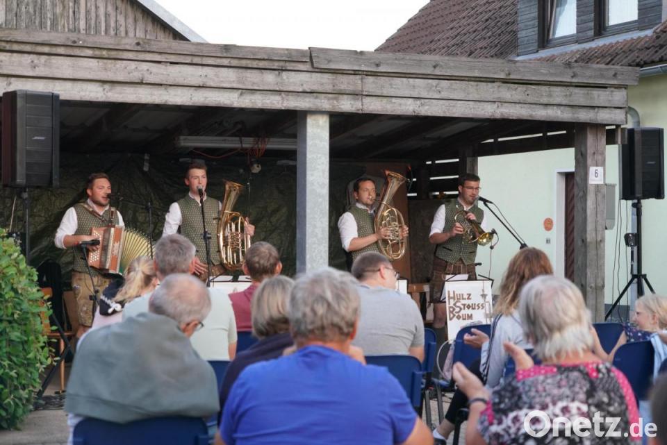 Aus der Garage des Hauses mit der Nummer 6 von Feuerwehrvorsitzendem Hans Dittmann heraus brachten die vier "Hulzstousboum" Jonas „Joni“ Kraus, Konstantin „Konsti“ Stahl , Andreas „Rais“ Holfelner und Julian „Jules“ Bauer den 170 Zuhörern am Mittwoch ihr enormes Können zu Gehör.