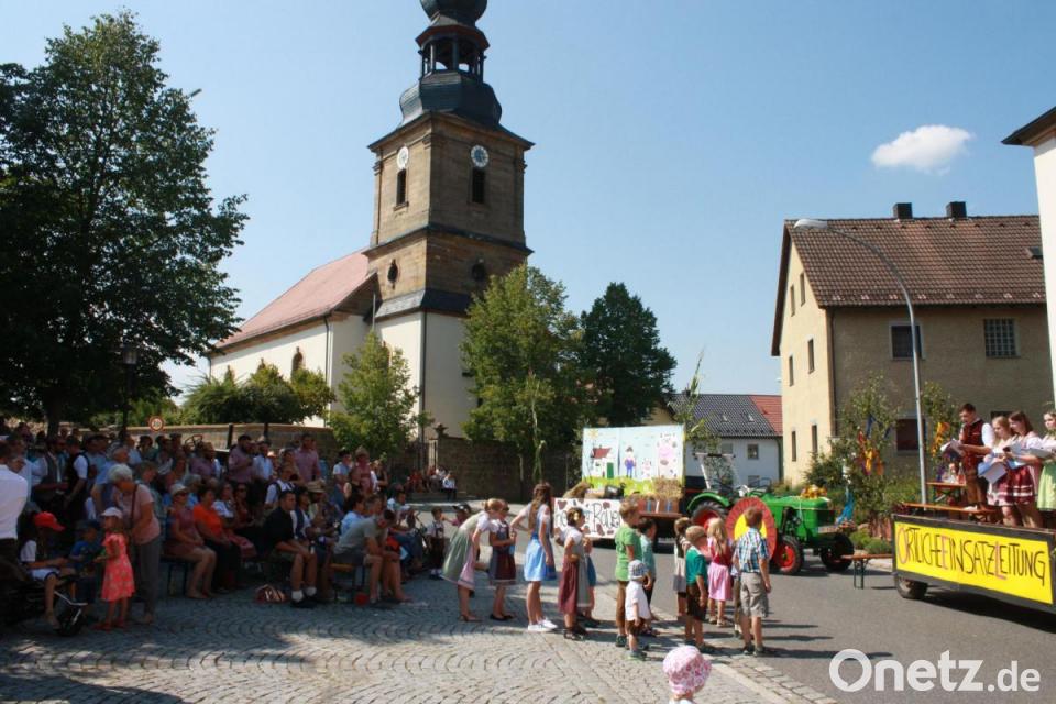 Nachdem bereits ab Vormittag mehrere Hundert Besucher die Gelegenheit zum Mittagstisch im Schützenhaus oder bei der Zeltkirwa in der Weinbergstraße genutzt und sich mit Ente, Reh oder Schäufele gestärkt hatten, rollte gegen 14 Uhr der Kirwa-Zug durch den Ort. Mehrere Fußgruppen und detailverliebte Themenwägen sowie die zwei „Örtlichen Einsatzlleitungswägen“ der Kirwa- Jugend passierten die Gassen und Straßen, um mit dem immer wiederkehrenden Schlachtruf „Wer hout Kirwa – Uns hout Kirwa“ auf den Höhepunkt des Hochfests aufmerksam zu machen. Nach einer Ansprache von Moderator Sebastian Schönmann legten dann die Sänger los. Andreas Nickl, Elisa Biersack, Leonie Schmidt und Annika Schönmann berichteten unter Begleitung von Jan Seifert in kurzweiligen „G´Stanzln“ von so manch unerhörter Begebenheit.
