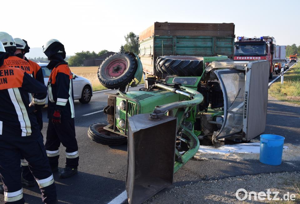 Der Audi kam nach links von der Fahrbahn ab. Durch das Gegensteuern geriet der Autofahrer nach kurzer Fahrt im angrenzenden Straßengraben wieder zurück auf die Fahrbahn. Durch den Zusammenstoß kippte der Deutz-Traktor, der einen Anhänger zog, um und blieb ebenfalls auf der Gegenfahrbahn liegen.