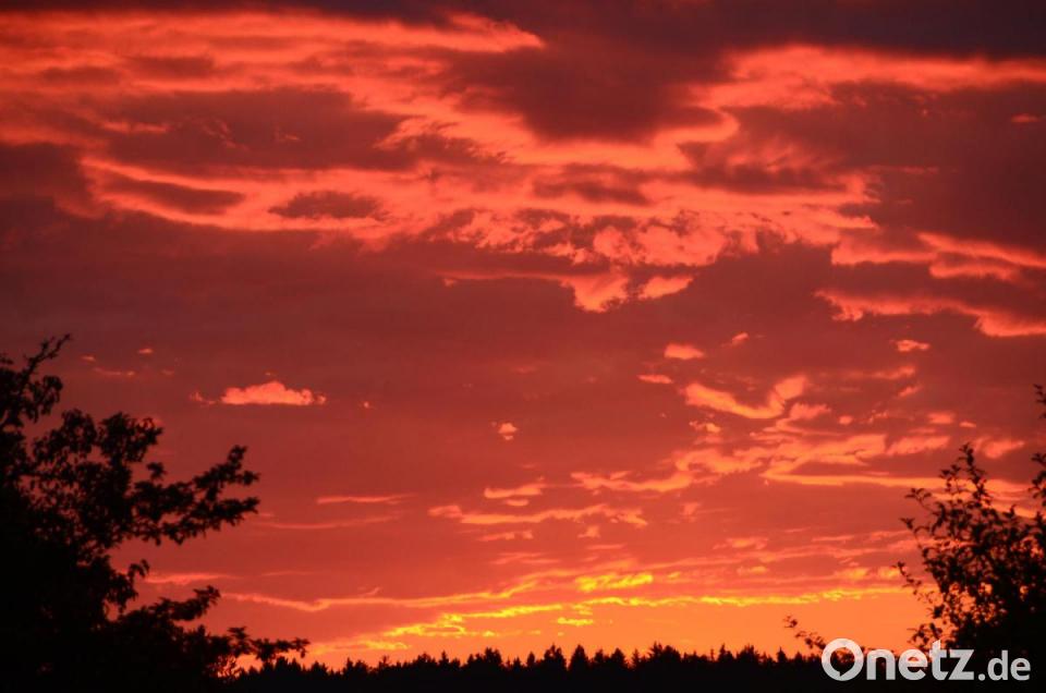 Naturkino mit Sonnenuntergang. Zurücklehnen und staunen. Als würde der Himmel brennen, verabschiedete sich die Sonne mit einem wundervollen Spektakel am Himmel und tauchte die Umgebung zwischen Himmel und Erde in ein mystisches Licht. Hinter dem Schützenhaus St. Thomas hatte man die schönste Aussicht auf diesen wunderbaren Zauber, der nur wenige Minuten und wenige Momente vergönnt war.
