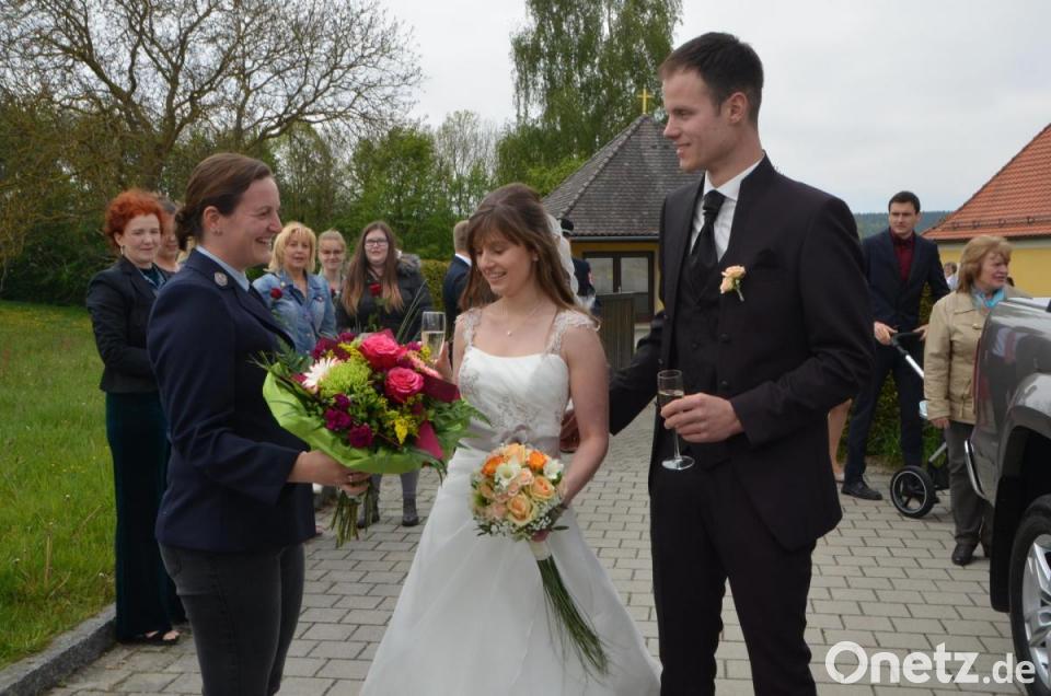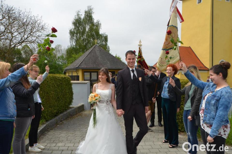 Die Band „Casamento“ mit Lena Rötzer, Stefanie Mittelmeier, Felix Kopp und Michael Ertl gestalteten die Trauung musikalisch. Der Maschinenbautechniker lernte seine Braut, die bei der BayWa in Nabburg als Betriebswirtin angestellt ist, durch den Katholischen Burschenverein Altenstadt kennen und lieben. Deswegen waren die Vereinsvertreter auch anwesend, als das frischvermählte Ehepaar nach der Hochzeitsmesse das Gotteshaus verließ. Die Vertreter und Fahnenabordnungen der Freiwilligen Feuerwehr und der Katholischen Landjugend wünschten ebenfalls alles Gute, genauso wie die Arbeitskollegen der Braut. In der Stadthalle in Neustadt/WN fand anschließend die Hochzeitsfeier statt.