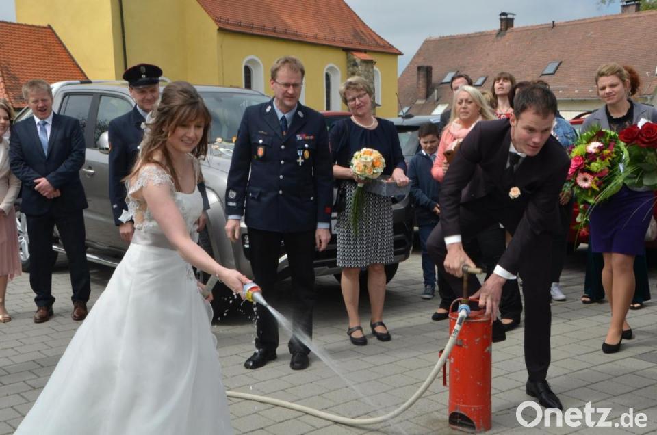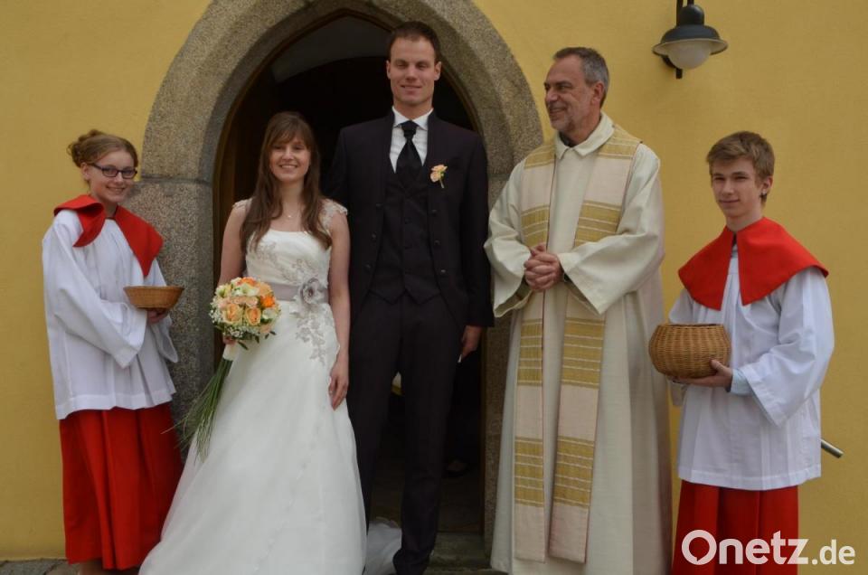 Es schien, als sei am Samstag das ganze Dorf auf den Beinen, als sich Christian Scharl (31) aus Ragenhof bei Nabburg und Ramona Wildenauer (26) aus Unterlind in der St. Thomas Kirche vor Pfarrer Josef Irlbacher die Ehe versprachen. Der Geistliche ist ein Cousin des Bräutigamvaters Josef Fritsch aus Obertresenfeld und nahm dem Paar das Eheversprechen ab. „Zwei sind besser als einer allein“, verkündete Josef Fritsch in der Lesung aus dem Buch Kohelet. Das Gebot „Liebt einander“ aus dem Johannes-Evangelium, das sich das Brautpaar selbst für den großen Tag aussuchte, legte der Geistliche dem Brautpaar nahe. Das gemeinsame Band knüpften sie bereits vor mehr als fünf Jahren als sie sich kennenlernten und vor drei Jahren als sie eine gemeinsame Wohnung bezogen.