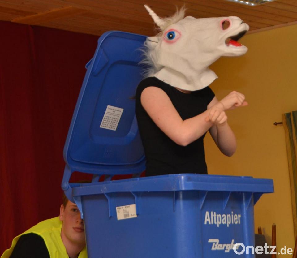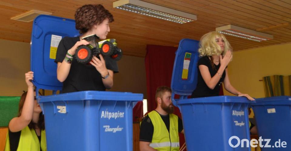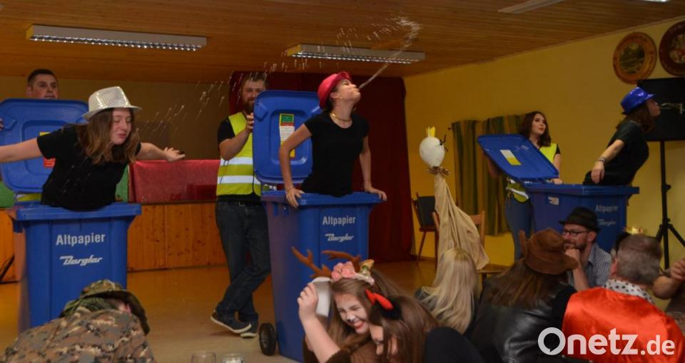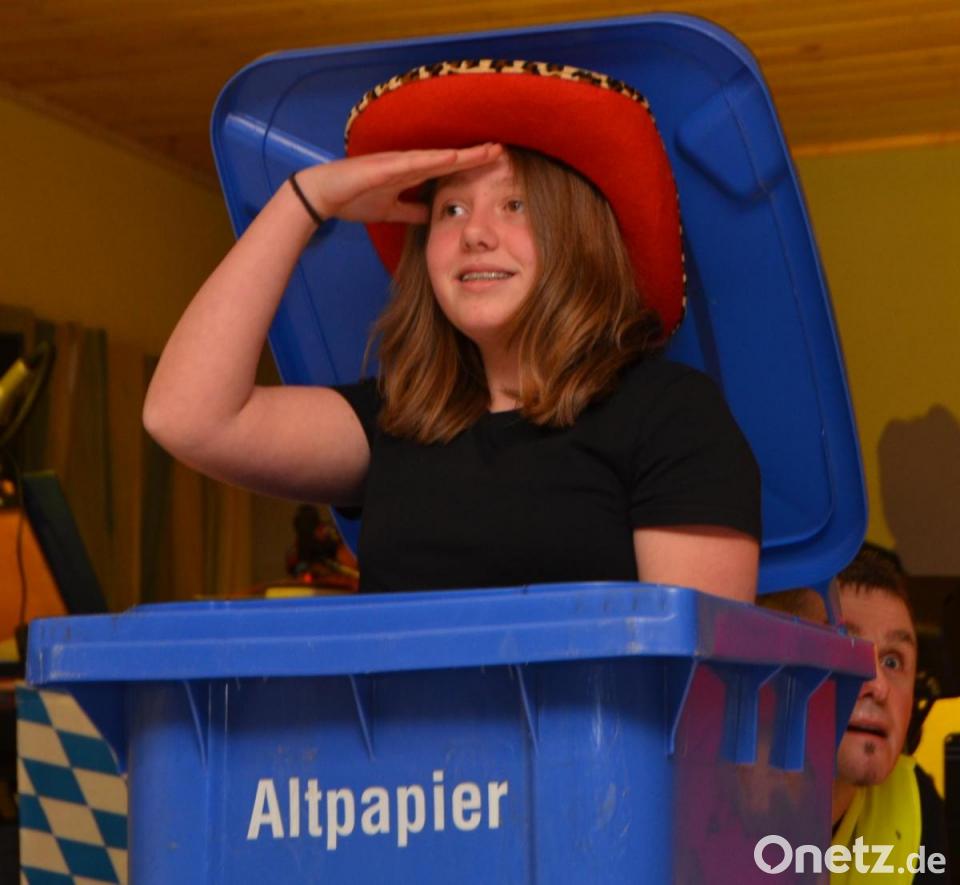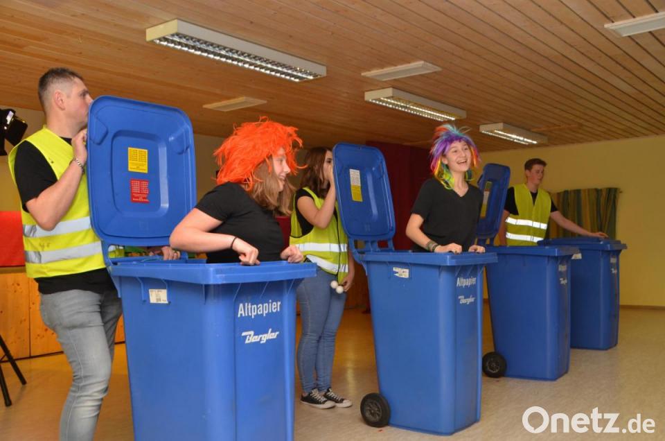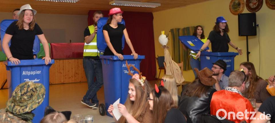 Der Fantasie waren an diesem Abend keine Grenzen gesetzt. Stadtrat Hans Bayerl packte seinen Poncho aus und setzte sich als feuriger Mexikaner den Sombrero auf sein Haupt. Das Spektakel nahm Fahrt auf, als blaue Papiertonnen auf die Bühne gebracht wurden und die Spannung unter den Gästen stieg. Wer wissen wollte, was Müllmänner so in ihrer Freizeit unternehmen, wenn sie einmal keinen Müll wegräumen, war hier genau richtig. Die jungen Schützen steckten hinter dieser Aufführung. In den von den Müllmännern Julius Kellner, Michael Kellner, Michael Beierl und der Müllfrau Antonia Reil herbeigeschobenen Tonnen versteckten sich Sabine Baierl, Sophie Licha, Marie Bäumler und Katharina Gürtler, die zu bestimmten und unterschiedlichen Musikstücken abwechslungsweise ihre Köpfe daraus reckten und so manchen Schabernack trieben. Regie führte Paulus Kellner, der sich eine Soutane übergezogen hatte und sogar stilsicher ein Birett trug.