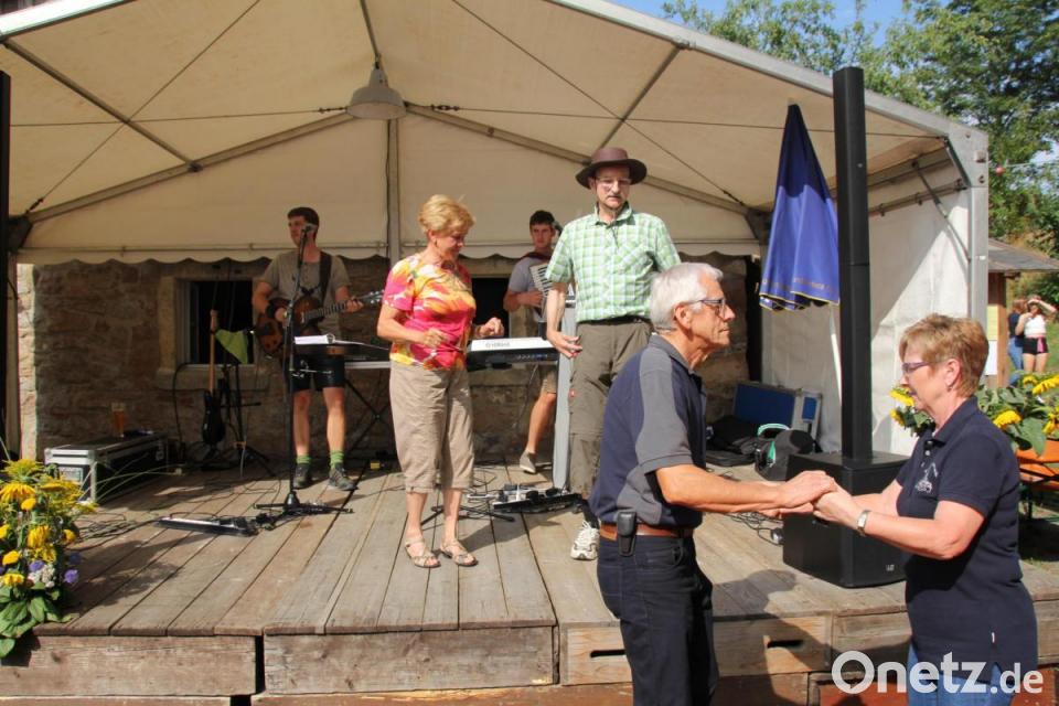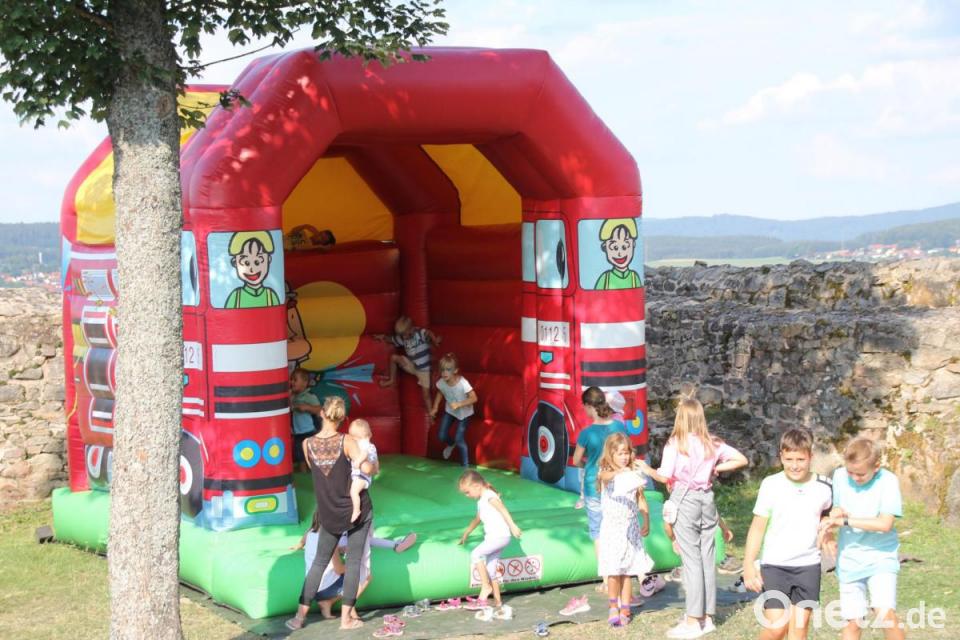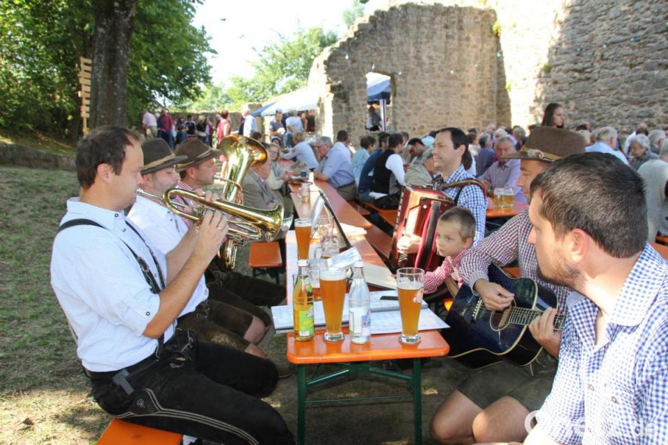 Den Nachmittag und Abend gestaltete das Duo "Waldlerbluat" musikalisch so flott, dass sich einige Volkstänzer nicht zurückhalten konnten und zu ihren Tänzen die kleine Bühne und den Naturtanzboden nutzten. Auch für die Kinder war mit Hüpfburg, Sandkasten, Kinderschminken und Malgelegenheiten für Abwechslung gesorgt. Am frühen Abend war die "Sau am Spieß" in Rekordzeit "abgefieselt" und Hedwig Pamler lud zu historischen Burghofführungen ein.