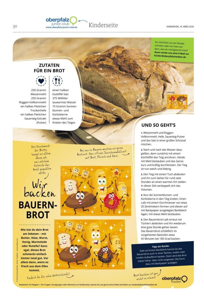 Seit Dezember 2024 gibt es bei Oberpfalz-Medien unseren neuen Junior-Club, der speziell für junge Leserinnen und Leser im Alter von 6 bis 12 Jahren ins Leben gerufen wurde. Der Club bietet eine bunte Mischung aus Veranstaltungstipps, kreativen Bastelanleitungen, spannenden Rätseln, Ausmalbildern sowie Rezepten und interessanten Wissensthemen - und das alles kostenlos.