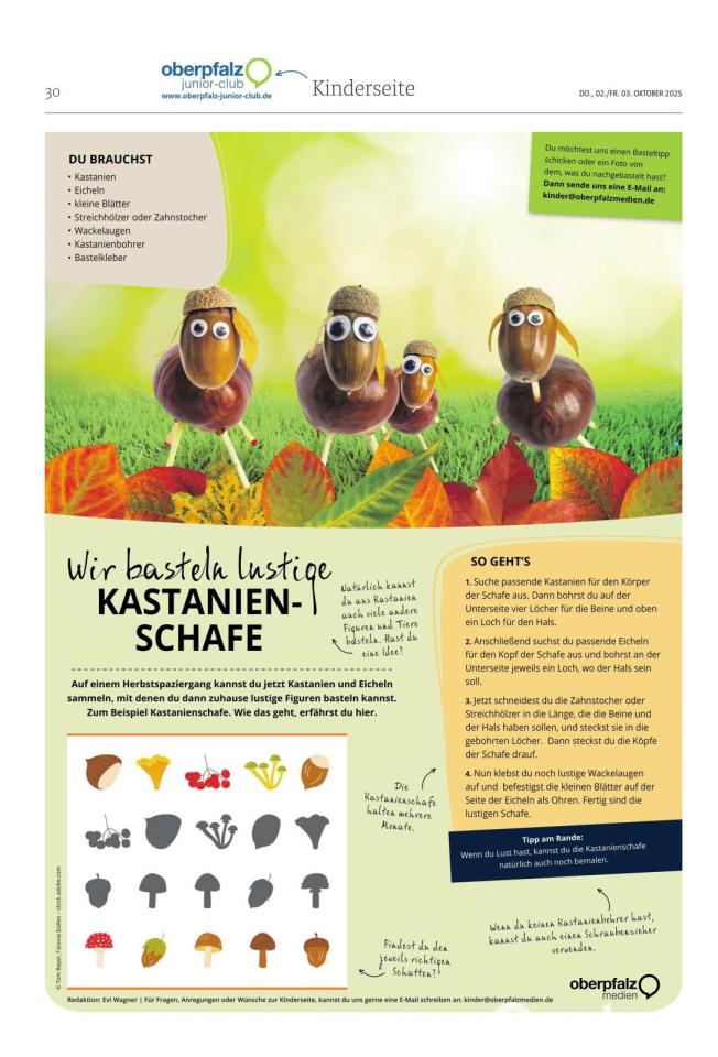 Seit Dezember 2024 gibt es bei Oberpfalz-Medien unseren neuen Junior-Club, der speziell für junge Leserinnen und Leser im Alter von 6 bis 12 Jahren ins Leben gerufen wurde. Der Club bietet eine bunte Mischung aus Veranstaltungstipps, kreativen Bastelanleitungen, spannenden Rätseln, Ausmalbildern sowie Rezepten und interessanten Wissensthemen - und das alles kostenlos.