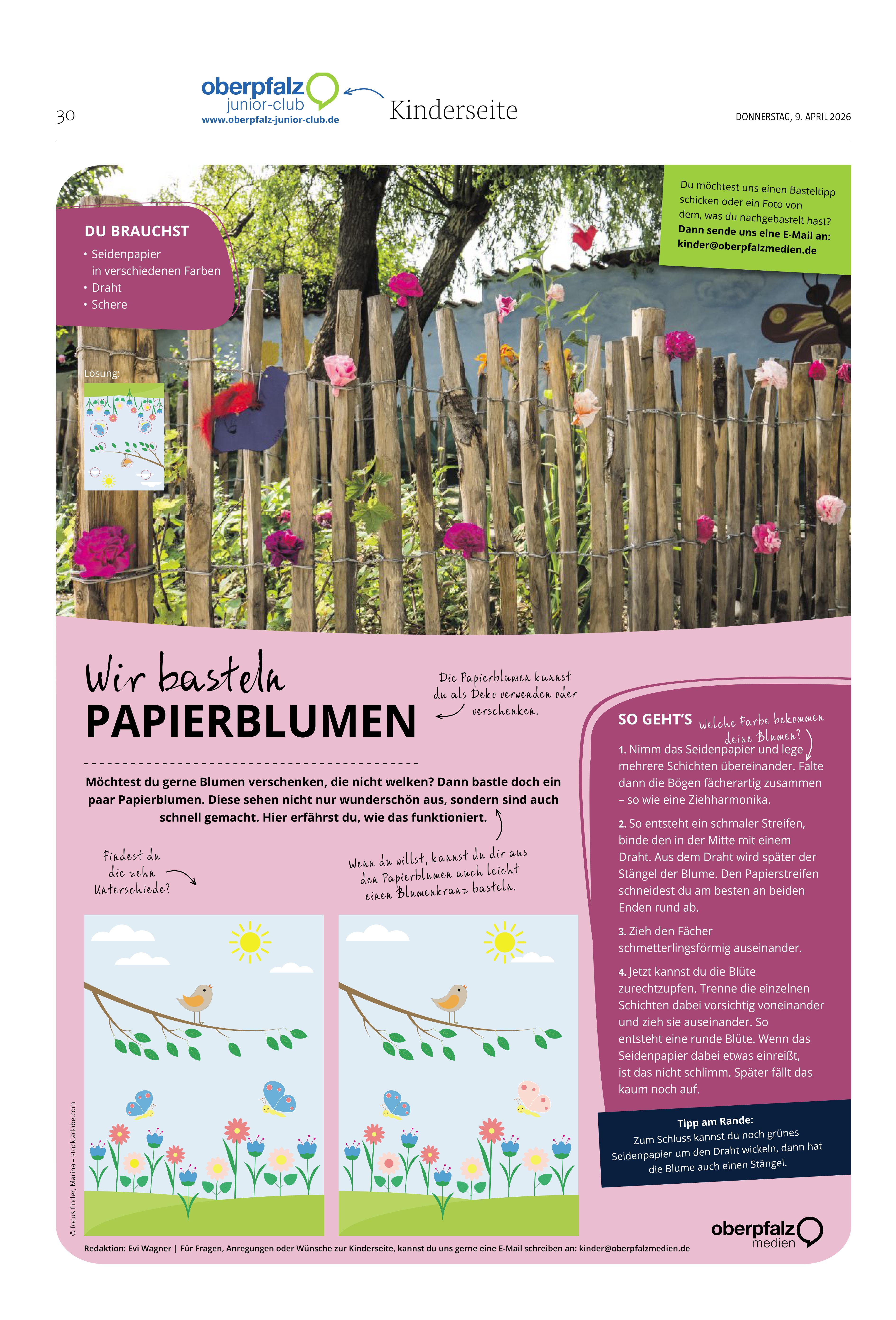 Auf unserer Kinderseite findet ihr regelmäßig tolle Bastelanleitungen und Rezeptideen! Hier könnt ihr die aktuelle Seite downloaden. Viel Spaß beim Selbermachen.