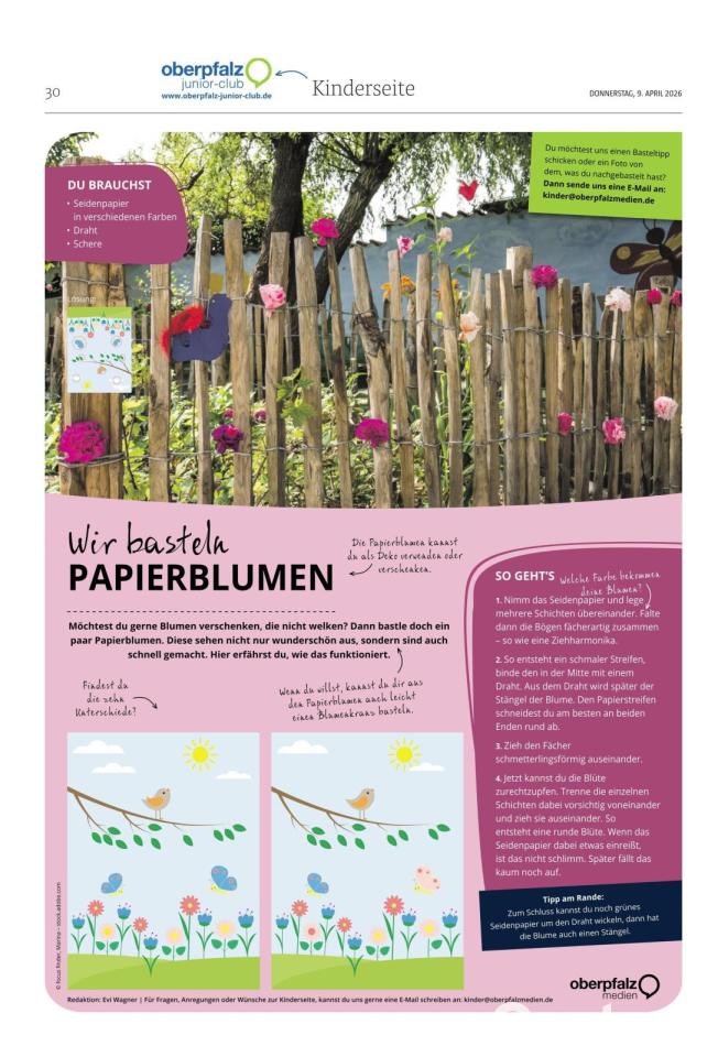 Wir basteln Papierblumen. Bild: Oberpfalz Medien