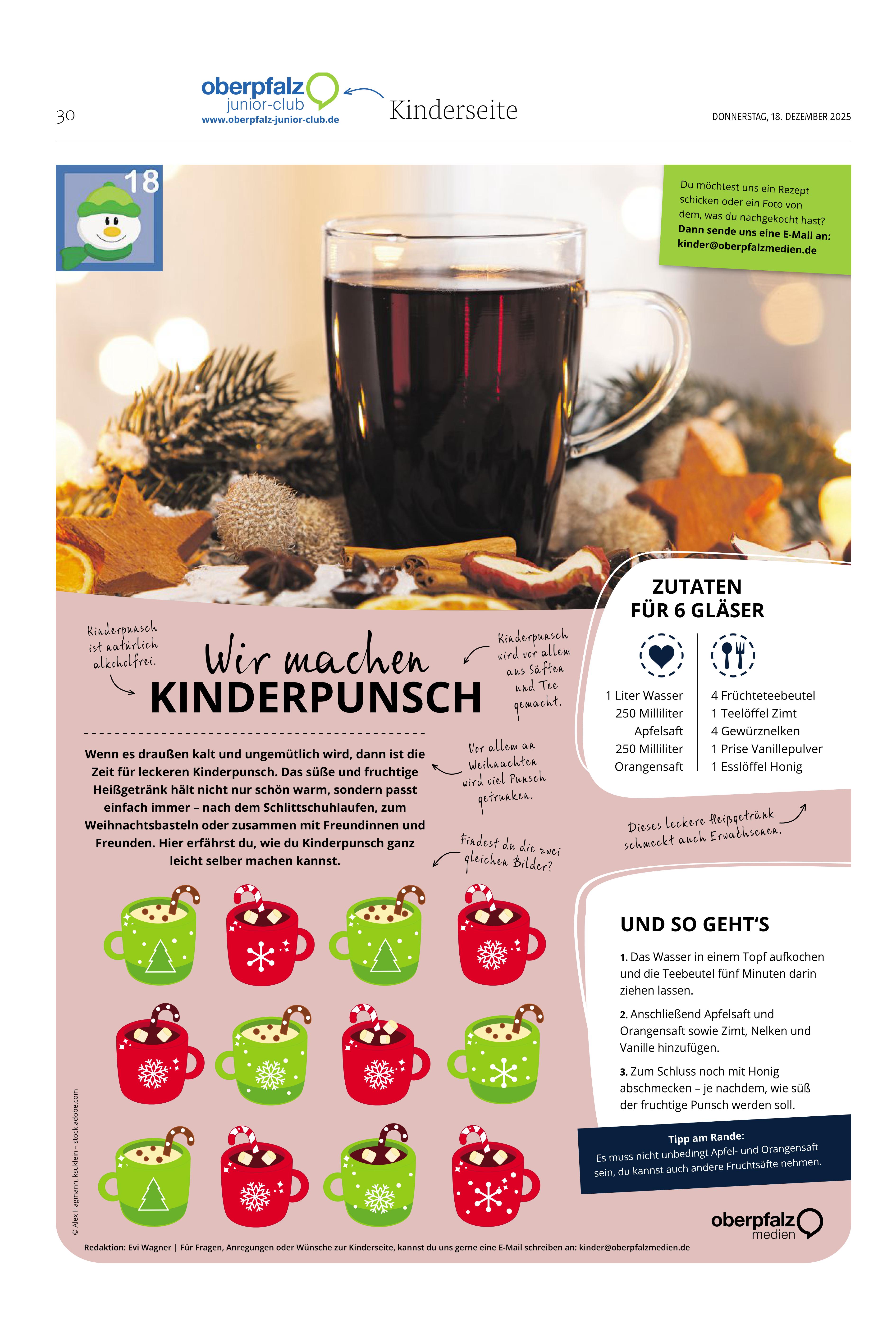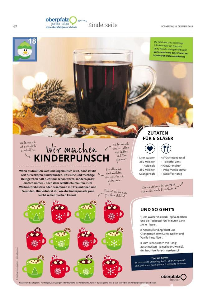 Seit Dezember 2024 gibt es bei Oberpfalz-Medien unseren neuen Junior-Club, der speziell für junge Leserinnen und Leser im Alter von 6 bis 12 Jahren ins Leben gerufen wurde. Der Club bietet eine bunte Mischung aus Veranstaltungstipps, kreativen Bastelanleitungen, spannenden Rätseln, Ausmalbildern sowie Rezepten und interessanten Wissensthemen - und das alles kostenlos.