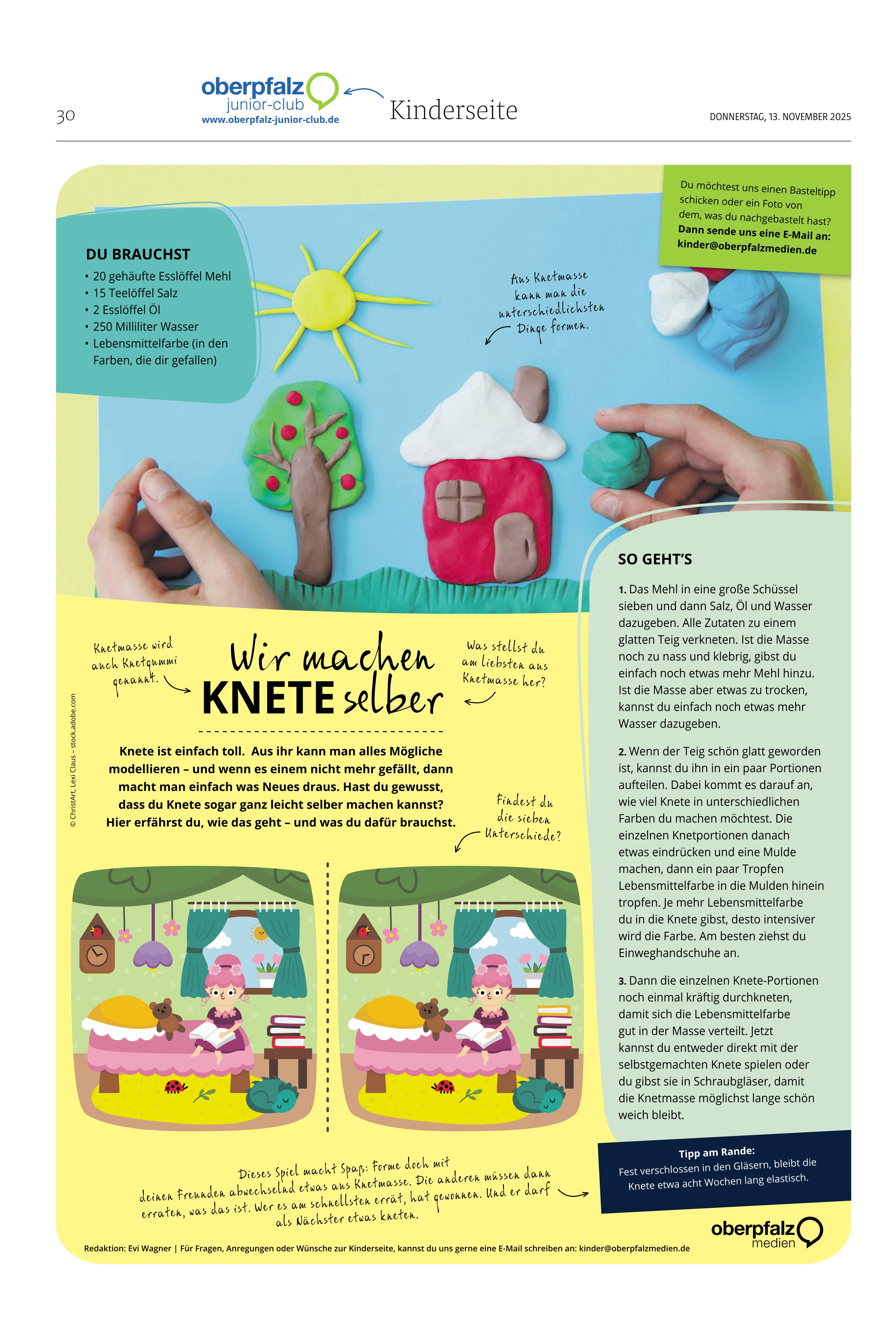 Seit Dezember 2024 gibt es bei Oberpfalz-Medien unseren neuen Junior-Club, der speziell für junge Leserinnen und Leser im Alter von 6 bis 12 Jahren ins Leben gerufen wurde. Der Club bietet eine bunte Mischung aus Veranstaltungstipps, kreativen Bastelanleitungen, spannenden Rätseln, Ausmalbildern sowie Rezepten und interessanten Wissensthemen - und das alles kostenlos.