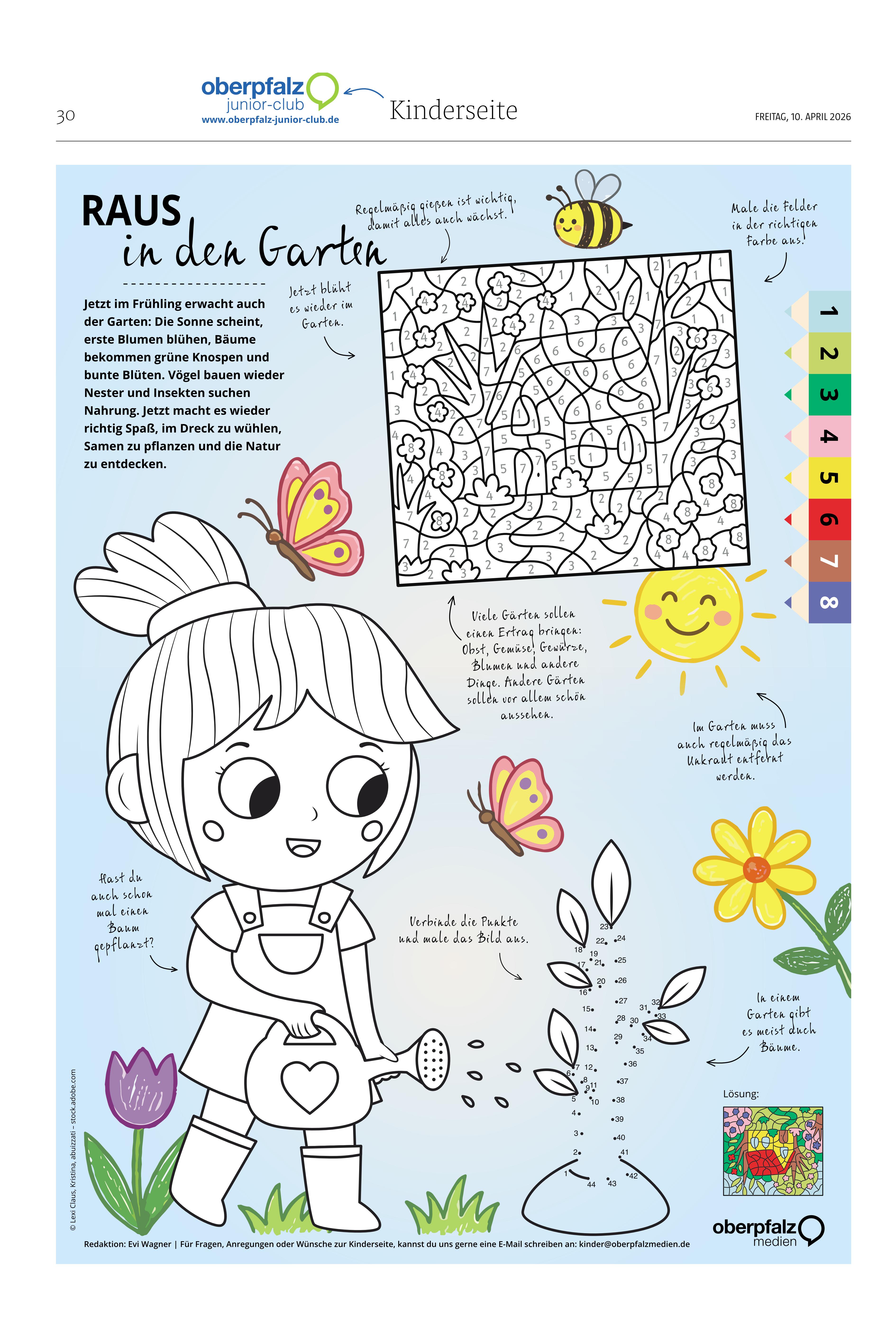 Auf unserer Kinderseite findet ihr wöchentlich viele tolle Ausmalbilder und Rätsel zum Mitmachen! Hier könnt ihr die aktuelle Seite downloaden. Viel Spaß beim Malen und Knobeln.