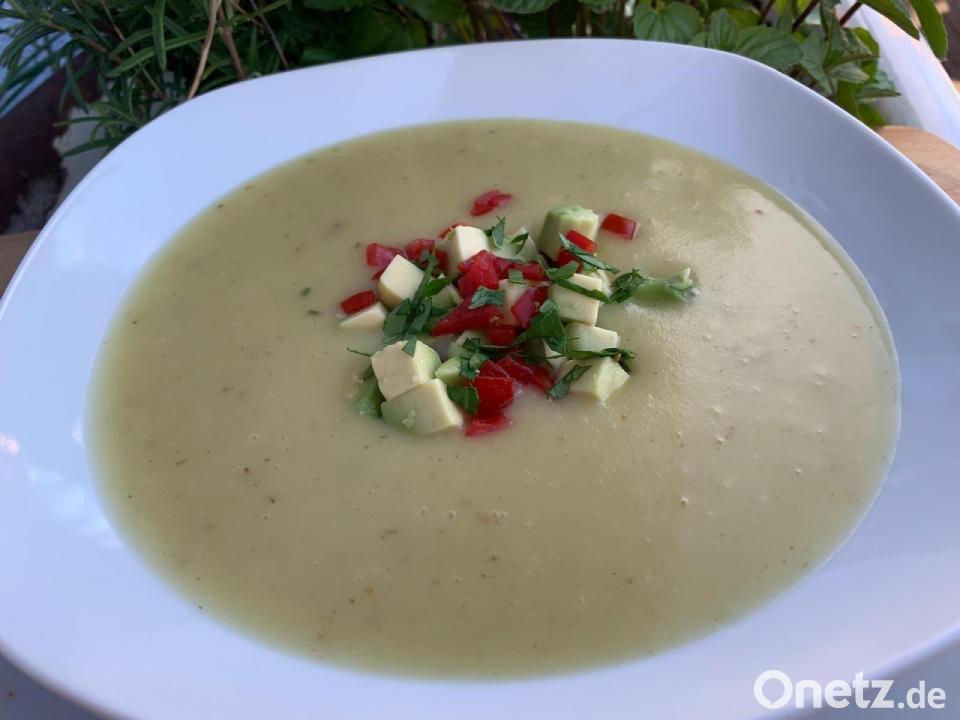 Die Kartoffeln glatt pürieren und wieder aufkochen. Mit Salz und Pfeffer würzen. "Je nach Konsistenz die Suppe etwas einkochen lassen oder noch etwas Brühe zugeben", erklärt OWZ-Küchenchef Michael Schiffer.
