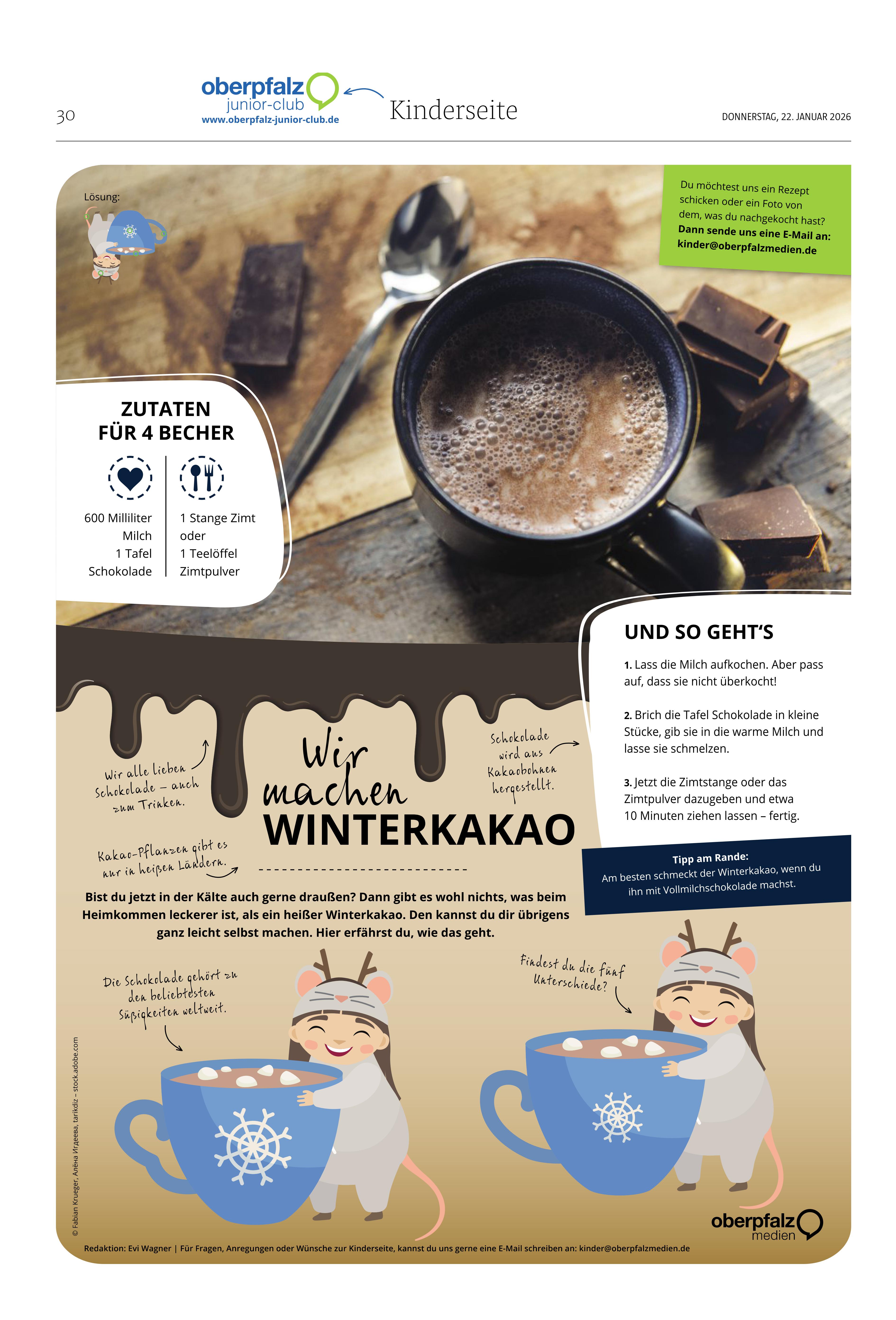 Seit Dezember 2024 gibt es bei Oberpfalz-Medien unseren neuen Junior-Club, der speziell für junge Leserinnen und Leser im Alter von 6 bis 12 Jahren ins Leben gerufen wurde. Der Club bietet eine bunte Mischung aus Veranstaltungstipps, kreativen Bastelanleitungen, spannenden Rätseln, Ausmalbildern sowie Rezepten und interessanten Wissensthemen - und das alles kostenlos.