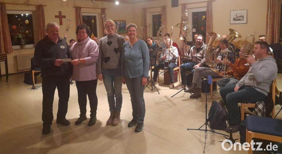 Sie war ein voller Erfolg in jeglicher Hinsicht, die Waldweihnacht mit Krippenspiel des Stammtisches Kuemmerling. Am vierten Adventssonntag hatte seine Mitglieder die Bevölkerung in das Eiselbachtal bei Oberreinbach eingeladen. Vorangegangen war eine gemeinsame Fackelwanderung in den Wald. Den Gottesdienst vor Ort umrahmte der Posaunenchor aus Neukirchen. Als Dank dafür erhielten die Bläser nun eine Spende. Der Vorsitzende des Stammtisches Kuemmerling, Karlheinz "Billi" Pilhöfer, und seine Schriftführerin Doris Holzwarth schauten bei einer Posaunenchorprobe in Neukirchen vorbei und brachten eine Spende in Höhe von 600 Euro für die Musikanten mit. Die Kollekte aus der Waldweihnacht wurde dabei aus Stammtischmitteln auf eben jenen Betrag aufgestockt. Die Chorleiterin Valerie Berendes und die Kassenwartin des Posaunenchores, Claudia Rösel, nahmen die großzügige "Gage" für den Auftritt im Eiselbachtal erfreut entgegen.