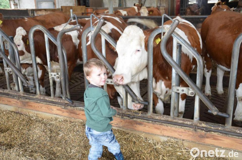 Landwirt Manfred Bäumler ist ein Fachmann, wenn es um Fragen rund um den Bauernhof geht. Deswegen war er auch der richtige Mann für die Mädchen und Buben, die von der Siedlergemeinschaft Vohenstrauß zu einem Feriennachmittag nach Obertresenfeld eingeladen wurden. Zunächst ging es für die Kinder, die meist in Begleitung ihrer Eltern waren, in den Stall zu den vielen Rindern. Der Bauernhof bietet einen Lernort von besonderer Güte, denn die Kinder erfahren nicht nur, wie viel Milch eine Kuh gibt, sondern auch, dass eine Kuh nur Milch gibt, weil sie ein Kälbchen geboren hat.