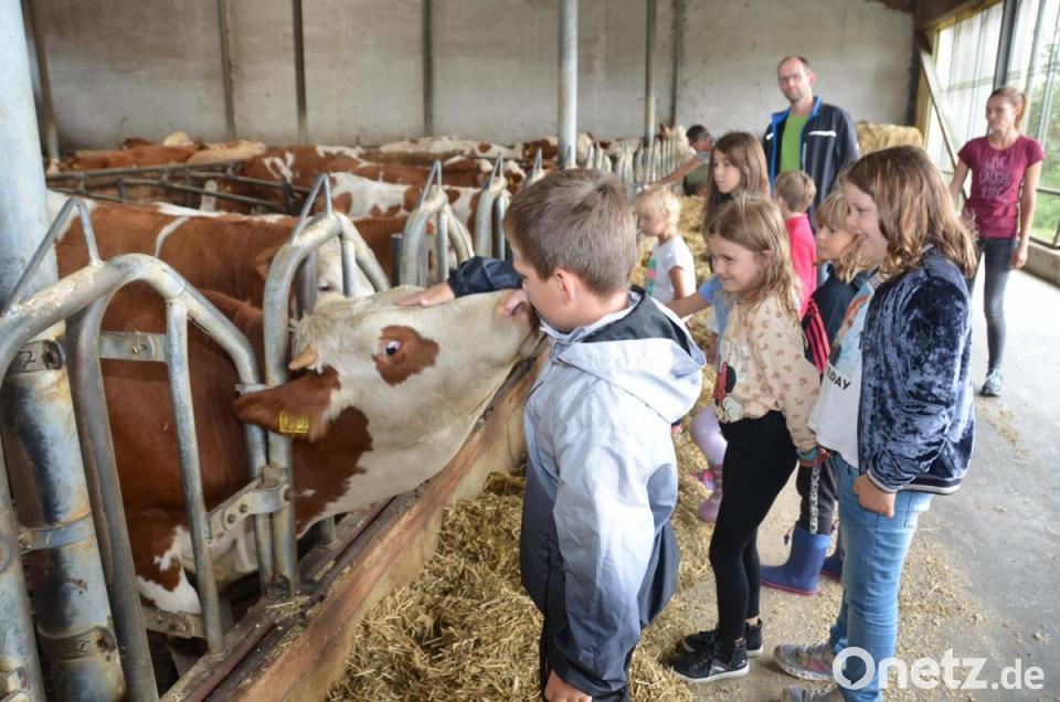 Schnell gingen einige Kinder auf Tuchfühlung mit den Kühen und streichelten sie oder reichten ihnen Futter. Nicht schlecht staunten sie, dass jede Kuh, wann immer sie will, zum Melkroboter gehen kann. Dort wird das weiße Gold wie selbstverständlich abgezapft.