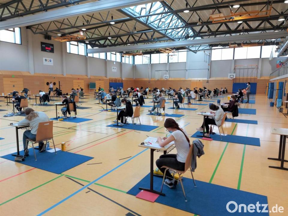 Im Abstand von fünf Metern schrieben die 81 Abiturienten des Ortenburg-Gymnasiums in der gut durchlüfteten Dreifach-Sporthalle ihr Deutsch-Abitur, das am Mittwoch den Auftakt der schriftlichen Abschlussprüfungen bildete.