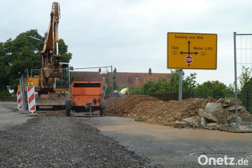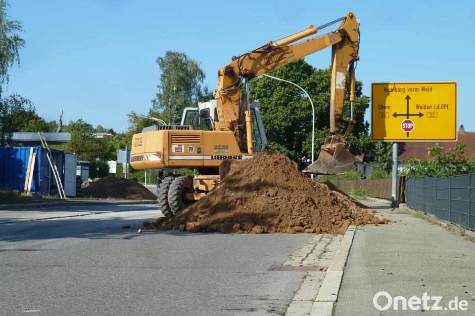 Am Montag rückten nun die Baumaschinen an und schon am Dienstagabend war die Fahrbahn wie ein Feld „gepflügt“. Besser gesagt, die Asphaltfräse lockerte die Schichten im Bereich der Leitungen. Damit die Autos hier wieder fahren können – die Absperrung lässt Anliegerverkehr zu – drückte ein Bagger den Schotter gleich wieder fest an. Die Planung hat das Ingenieurbüro Weiss in Neunburg übernommen. Rund 3700 Kubikmeter Erdarbeiten stehen an. Etwa 1000 Meter Wasserleitungen werden verlegt, 32 Schieber und 9 Hydranten gesetzt. Bei der Sanierung und Erweiterung der Abwasseranlage sind rund 250 Meter Stahlbetonrohre einzubauen. Der Mischwasserkanal wird um zwei Haltungen erweitert. Der Oberflächenwasserkanal wird auf einer Länge von etwa 150 Metern erneuert (im Bereich der B 22 ist dies bereits erfolgt). Dazu sieht die Planung die Auflassung des Oberflächenkanals auf 190 Metern vor. Dabei werden 24 Anschlussleitungen der Straßenabläufe an den Mischwasserkanal umgeschlossen und 22 Straßenabläufe neu eingesetzt.