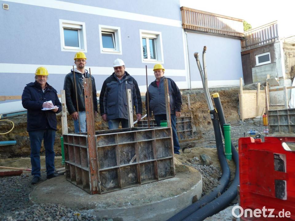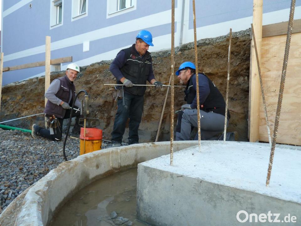 Am Mittwochvormittag fand ein Ortstermin mit Architekt Johannes Werner vom Büro Brückner & Brückner aus Tirschenreuth statt. Neben Verwaltungsamtsrat Wolfgang Ruhland waren Bauleiter Johann Biegerl und Mitarbeiter Michael Baumer vor Ort. "Die Bodengründung ist fertig", freute sich der geschäftsleitende Beamte. Bevor die Sohle eingebaut werden kann, wird derzeit die Erdung für den Blitz- und Überspannungsschutz (Firma Häffner) erstellt. "Der Kanal ist verlegt und Leerrohre für die Installation sind gesetzt", informierte Biegerl. Auch nahezu alle Bodenplatten-Auflager sind fertig. Aufgrund der schwierigen Bodenverhältnisse musste tiefer gegründet werden. Damit weiterer Erdausbau vermieden werden konnte, wurden 15 Brunnenringe auf tragenden Boden geführt. "Teilweise bis zu zwei Meter tief", ergänzte der Bauleiter. Ein Nachbargebäude (Bauer) musste zuvor unterfangen und dafür die Wand wie ein Schachbrett mit Beton verfüllt werden. Ab Montag werden Frostschutz und Dämmung in die Baugrube eingebracht und danach wird die Bodenplatte (rund 200 Quadratmeter/55 Zentimeter hoch) betoniert. "Wir sind sehr dankbar für das gute Wetter", betonte Architekt Johannes Werner. Denn aufgrund der exponierten Lage sei es eine sehr schwierige Baustelle. Alles müsse per Kran eingebracht werden. "Aber trotz der beengten Verhältnisse ist der Zugang zum Museum jederzeit gewährleistet", betonte der Planer. "Und bei Sonderveranstaltungen wird man sich arrangieren", ergänzte Ruhland. Seine Bitte: Die Bürger sollten die Sperrung der Parkplätze an den Werktagen beachten.