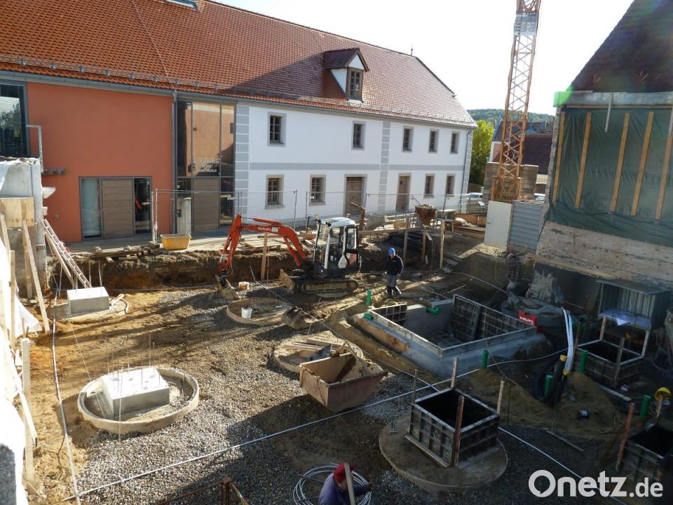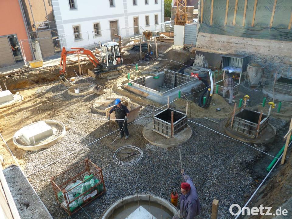 (ptr) Das trockene Herbstwetter ist der beste Bauhelfer. Nach den Hürden in der Planungs- und Beschlussphase und dem Abriss des Soutschka-Hauses (ehemalige Mulz) startete die Firma Baumer mit den Erdarbeiten. Dies erfolgte zwar ein Jahr später als geplant, doch jetzt läuft die Baustelle im Herzen der Stadt. Auch wenn Bodenverhältnisse, Zufahrt und Lagermöglichkeiten alles andere als optimal sind.