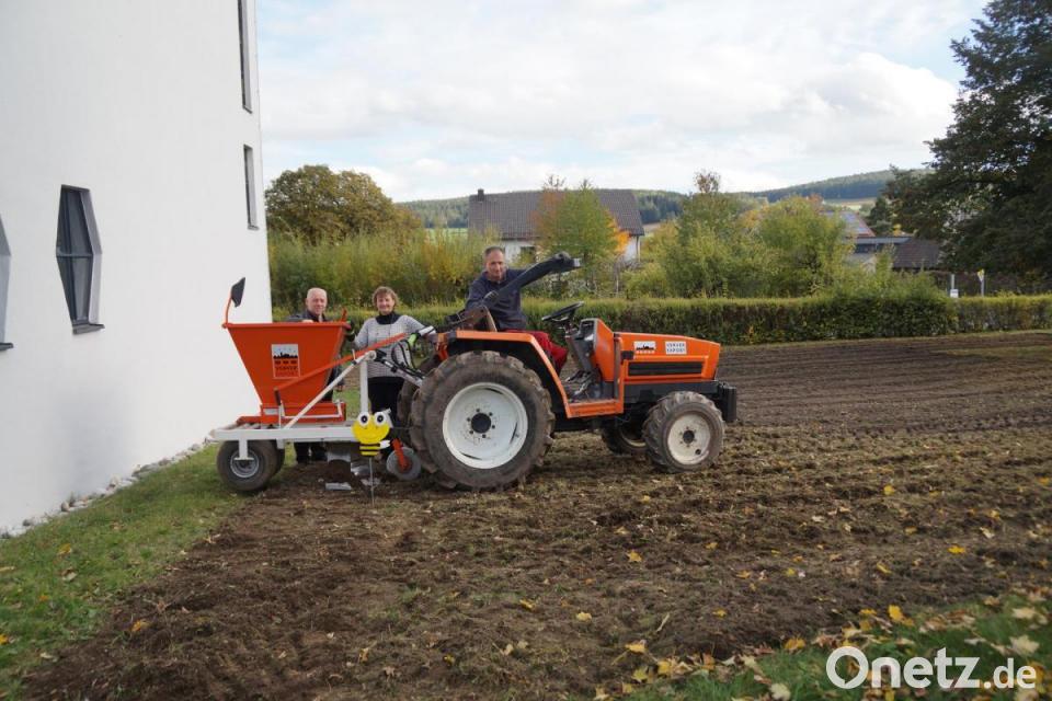 "Naturschutz ist die Hauptmotivation für die Pflanzaktion der evangelischen Kirchengemeinde in Oberviechtach", erklärte Initiatorin und Kirchenvorsteherin Gabi Gilch am Samstag. "Um dem Insektensterben entgegen zu wirken, säen wir zu den frühblühenden Frühlingsblumen eine mehrjährige Wildblumen- und Kräutersaat an." Beides zusammen bildet die Grundlage für eine insektenfreundliche mehrjährige Stauden-und Blumenzwiebelwiese. Nachdem die Rasenfläche vor der Kirche mit einer Profi-Fräse aufgelockert worden war, brachte Gabi Gilch mit einer speziellen Pflanzmaschine mehr als 12 000 Blumenzwiebeln unter die Erde. Mitglieder der Gemeinde harkten die Fläche auf und Fachfrau Melanie Hösl säte zusätzlich zu den Blumenzwiebeln eine Wildblumenmischung, welche die Grundlage für eine insektenfreundliche mehrjährige Blühwiese ist.