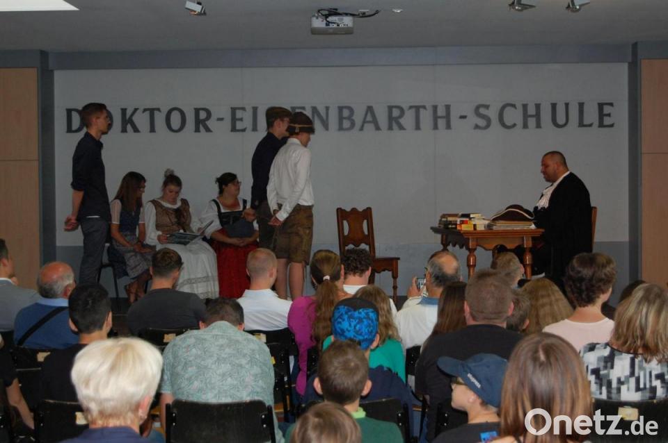 Nach einer langen Zwangspause durch Corona feierte die Dr.-Eisenbarth-Mittelschule Oberviechtach wieder ein Schulfest. Aula und Pausenhof waren zu einem Festivalgelände mit zahlreichen Ständen und zwei Bühnen umgestaltet worden. Die Schülerinnen und Schüler hatten sich im Vorfeld viele Gedanken gemacht, wie sie den Nachmittag bereichern könnten. Die Einen verkauften selbst hergestellte Seifen, Ansteck-Buttons und Motivblöcke. Bei den Anderen mussten die Gäste ein glückliches Händchen beim Dosenwerfen oder Vier-Hand-Töpfern beweisen. Die 9. Klasse stellte ihr "Küken-Projekt" vor – selbstverständlich inmitten ihrer Hühnerschar. Die Technikgruppe überraschte mit einer LED-Installation. So war für jeden Geschmack etwas dabei. Ein besonderes Highlight war die Theatervorführung des Festspielvereins aus der Reihe des "Königlich Bayerischen Amtsgerichts", bei der auch einige Mittelschüler mitwirkten. Der Elternbeirat sorgte mit Getränken und Bratwürsten für das leibliche Wohl der Gäste. Einige Klassen erweiterten die hervorragende Verköstigung durch Waffeln, Crêpes, Popcorn, Eis und Schnittlauchbrote. Unter den Gästen befand sich auch Bürgermeister Rudolf Teplitzky, der sich spontan im Jonglieren versuchte.