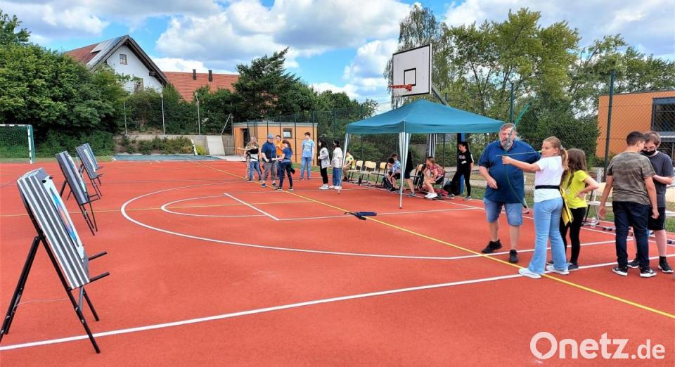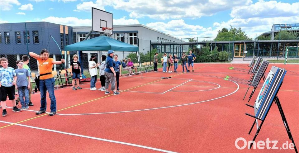 Bei einem Pilotprojekt wurden die Schülerinnen und Schüler der Offenen Ganztagsschule (OGTS) am Ortenburg-Gymnasium in die Kunst des Bogenschießens eingeführt. Schützenmeisterin Martina Herrmann und Erlebnispädagoge Andreas Seebauer vom Bogenclub Oberviechtach (BCO) vermittelten den über 20 Jugendlichen an den aufgebauten Schießständen Einblicke in das Olympische Bogenschießen sowie in die Trendsportart Blasrohr. Die Teilnehmer gingen sehr diszipliniert vor und beachteten die sicherheitsrelevanten Vorgaben, die von beiden Schützentrainern sorgsam eingeprägt wurden. „Das ist mal ein Sport, der mir gefällt“, meinte einer der Teilnehmer begeistert und erkundigte sich bei Martina Herrmann über die Ausübung des Bogensports im Verein. Zum Ende erlangten alle Teilnehmer die „Platzreife C an Bogen und Blasrohr“. Das bedeutet, sie dürfen am Vereinstraining in Gruppen mit drei weiteren Startern und einer erfahrenen Person teilnehmen. Die Betreuerin der OGTS, Maria Scherr-Passenberger, bedankte sich namens der Schüler für den vom BCO gebotenen erlebnisreichen Nachmittag für ihre Gruppe.
