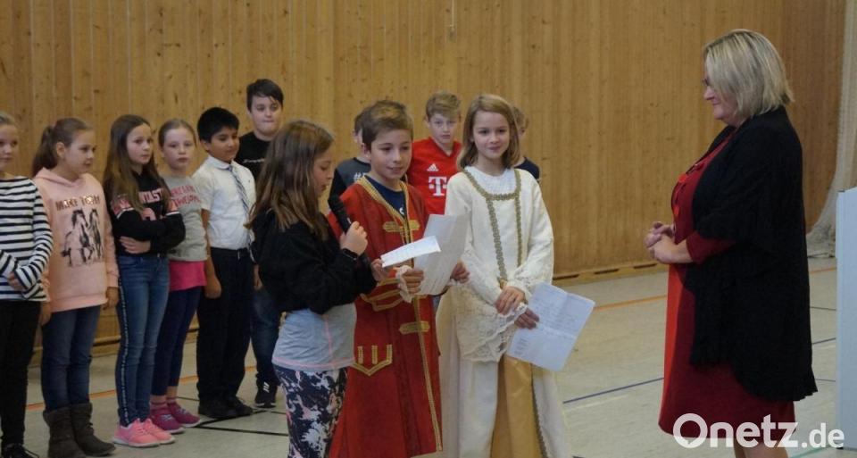 Das Programm der Einführung wurde maßgeblich von den Buben und Mädchen mitgestaltet. Zur Begrüßung sangen alle das Lied „Karibu“. Die Vielfalt der Kinder, die aus 16 unterschiedlichen Herkunftsländern stammen, wurde deutlich, als jedes von ihnen eine Blume mit der Fahne seines Landes überreichte und den Gruß in der jeweiligen Landessprache aufsagte. Natürlich durfte dabei auch das bayerische „Griaß de“ nicht fehlen. Die Viertklässler unterzogen die Schulleiterin einem Aufnahmetest für die Grundschule. Souverän konnte sie Fragen nach der genauen Schülerzahl oder dem Computerfachmann im Lehrerkollegium beantworten. Dafür gab es eine Urkunde. Mit vielen Sonnenstrahlen, auf denen gute Wünsche standen, gestalteten die Kleinen eine Sonne, und zum Abschluss wurden die guten Wünsche an die Rektorin in dem Lied „Ich wünsch dir einen Regenbogen“ übermittelt.