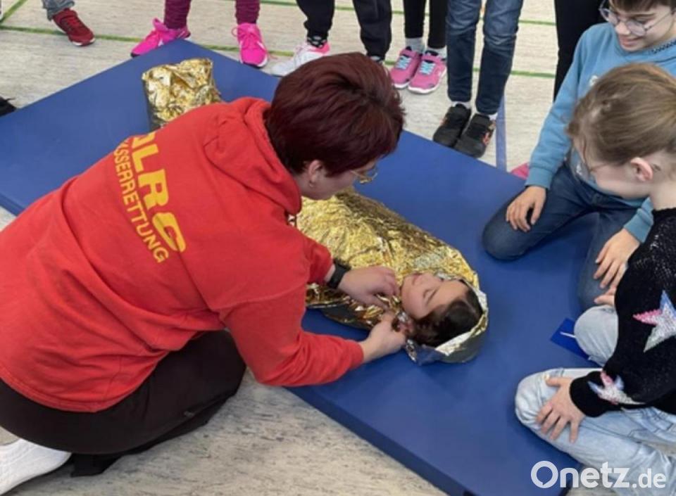 Was tun, wenn die Freundin oder der Freund auf dem Eis einbricht? Lehrerin Stefanie Riederer organisierte mit dem Team der Deutschen Lebens-Rettungs-Gesellschaft Rötz ein Eisregel-Training für die Grundschule Oberviechtach. Dabei wurde das richtige Verhalten auf dem Eis gelehrt.