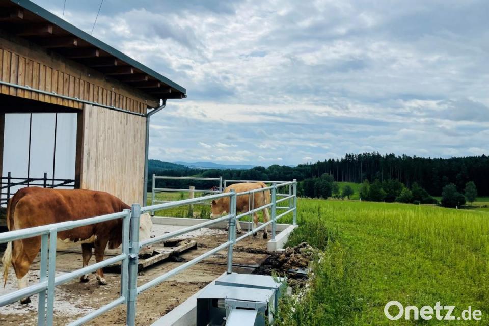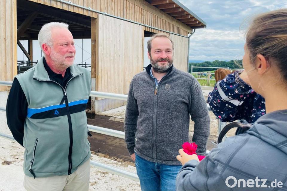 Julia und Johann Albang aus Lind setzen ihren Schwerpunkt künftig auf einen Öko-Milchviehbetrieb. Vergangene Woche sind die Kühe der beiden in den neuen Stall eingezogen, der ganz aus dem Holz des eigenen Waldes gefertigt ist. Tierhaltungsberater Herbert Wendl und Forstdirektor Alwin Kleber vom Amt für Ernährung, Landwirtschaft und Forsten (AELF) Regensburg-Schwandorf besuchte das Paar auf seinem Hof. „Gerade in der Landwirtschaft, wo du immer mit der Natur arbeitest, liegt es nahe, dass du auch beim Bauen – so weit wie möglich – natürliche Stoffe verwendest“, lobt Herbert Wendl den Bau.